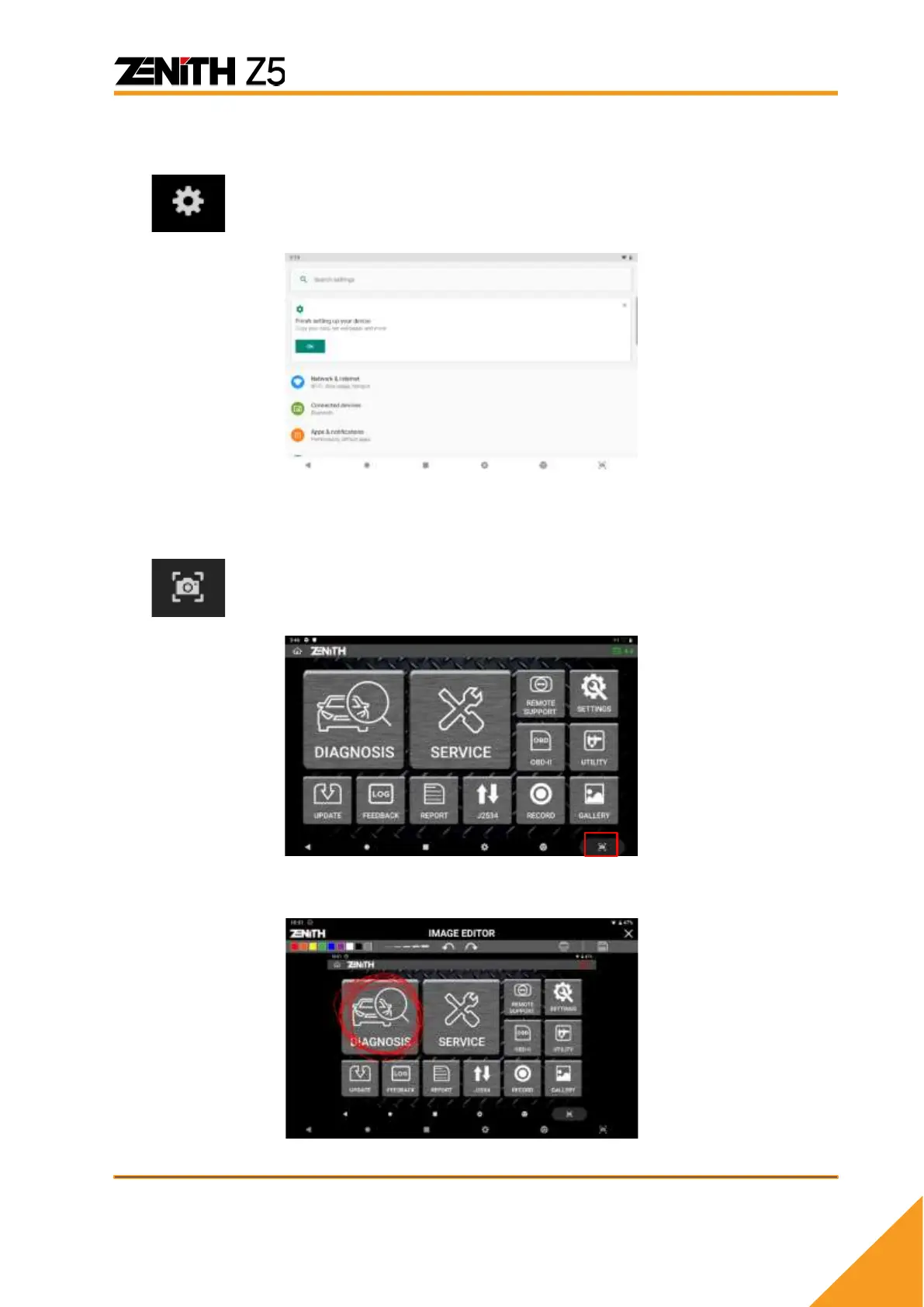 Zenith Z5 - Screen Capture Button; Setting Button