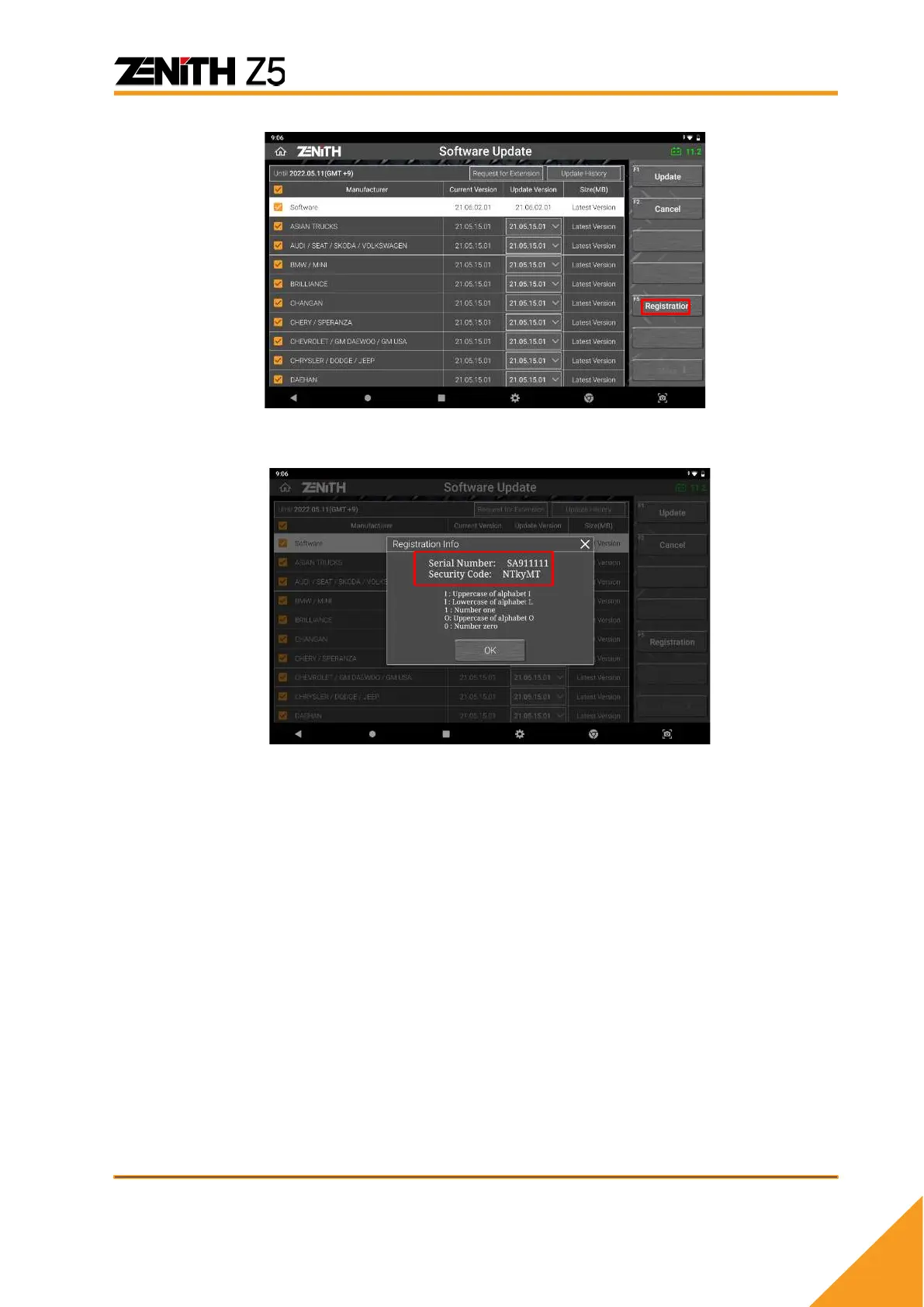 ⚫ Copy the Serial number and the Security code written on the popup