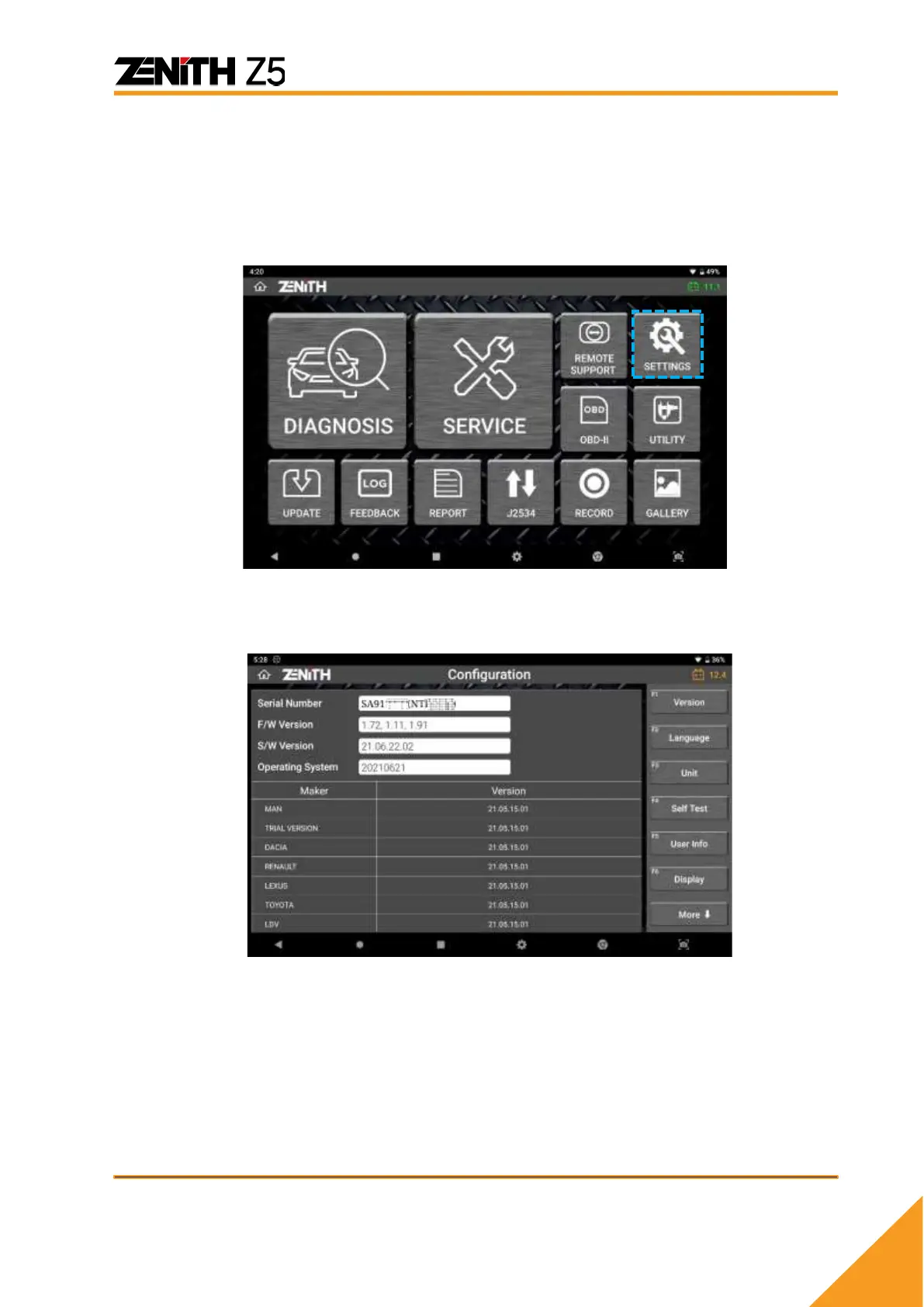 choose the Language of the Z5 software, and change the settings in measurement unit, and