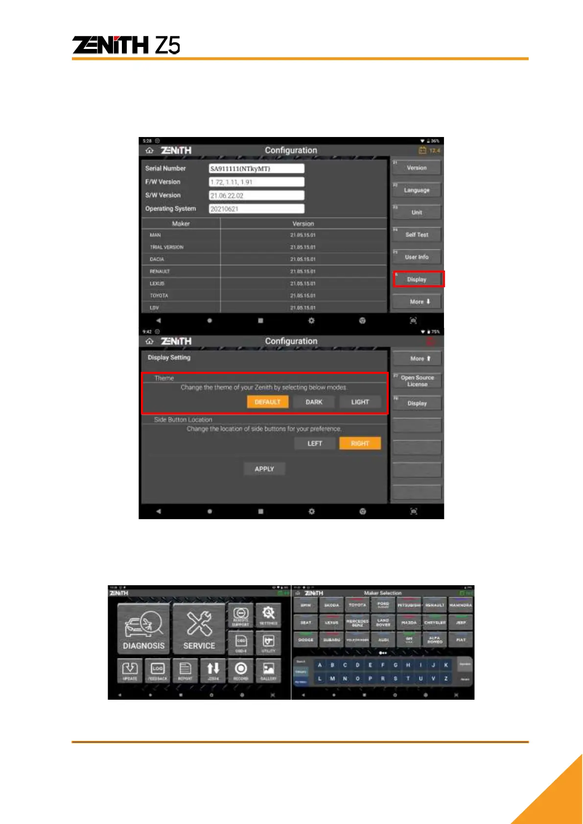 Z5 offers 3 different display modes: Default, Dark, and Light.