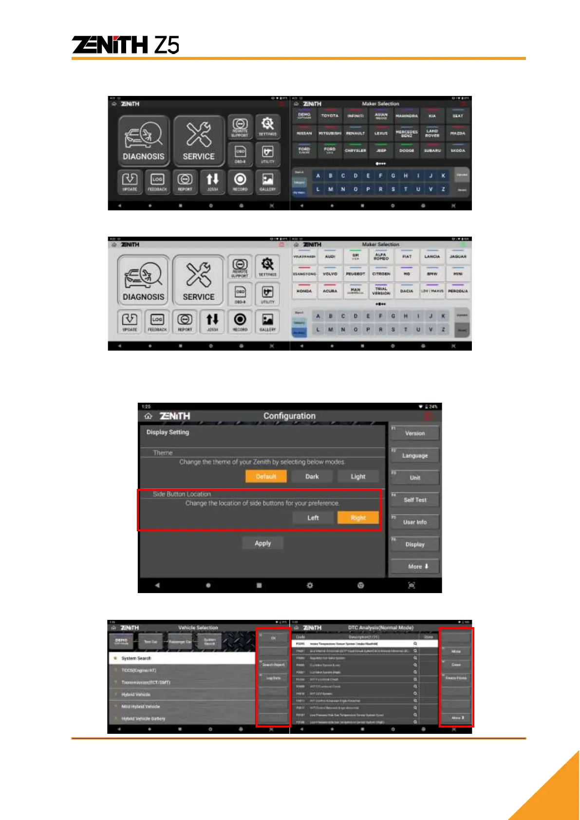 Zenith Z5 - Dark Mode; Light Mode; Side Button - Right; Side Button Location