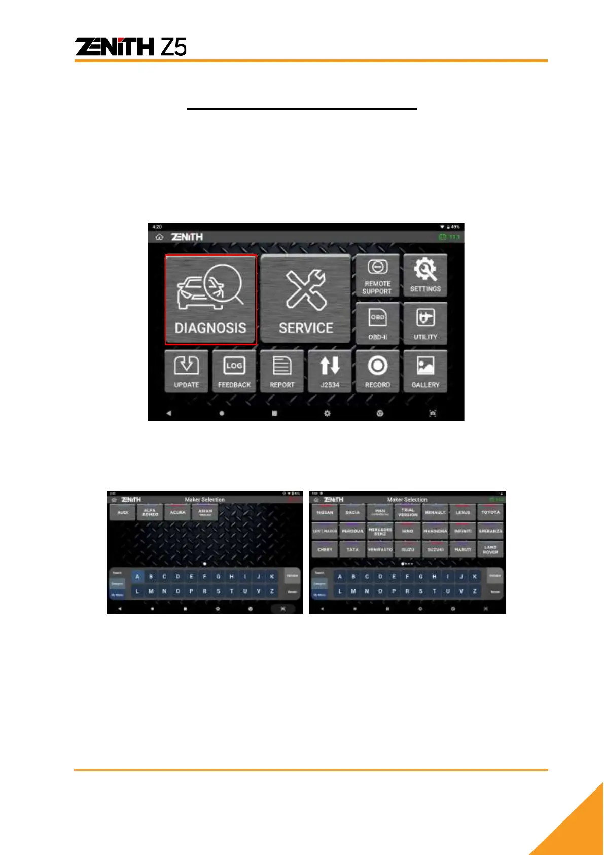 To start diagnosis, select “Diagnosis” icon from the Z5 main menu.