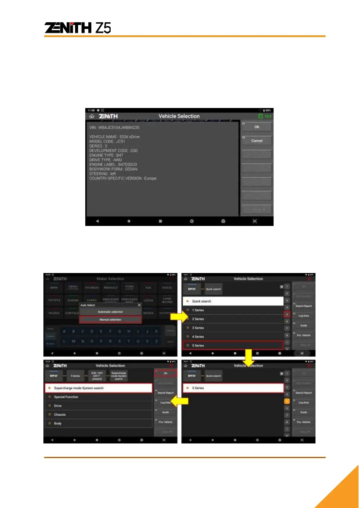 Zenith Z5 offers options to select the vehicle model either automatically or manually.