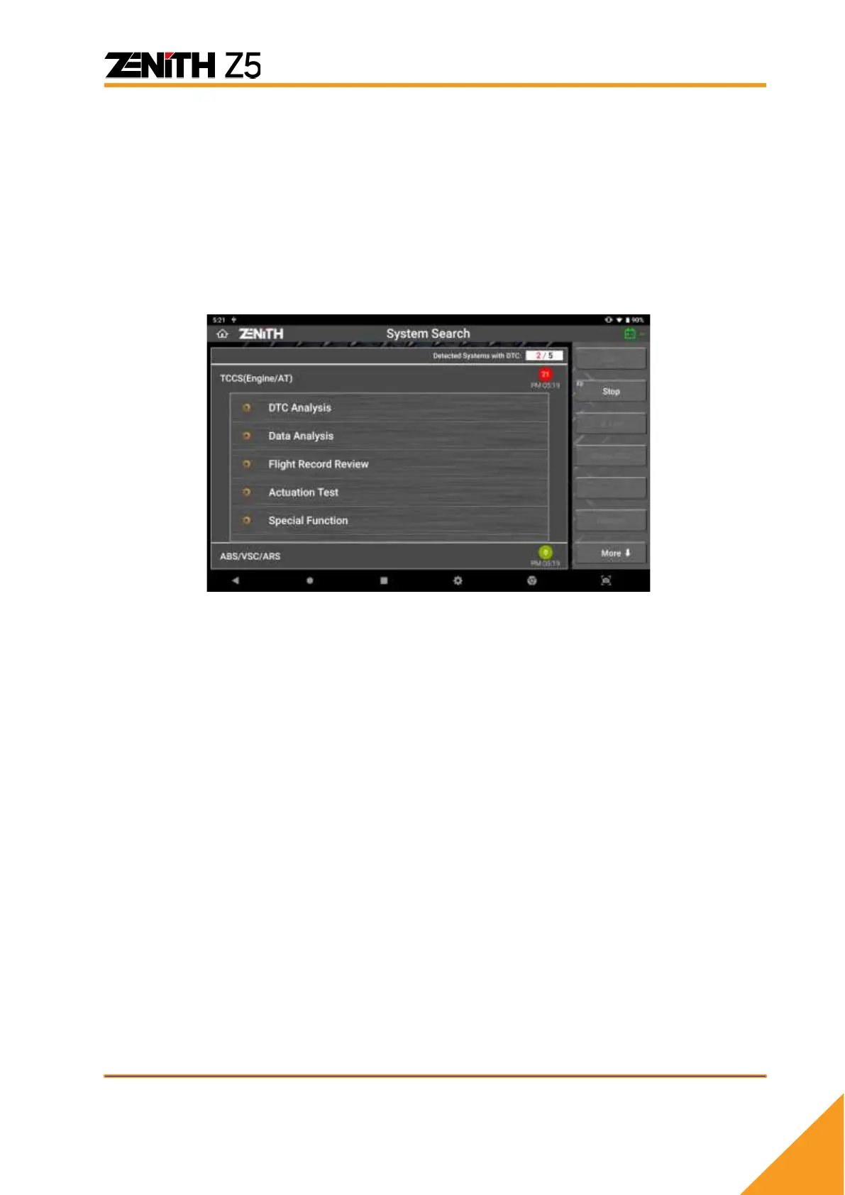 Select [DTC Analysis] then Z5 checks the DTCs set in the selected control system