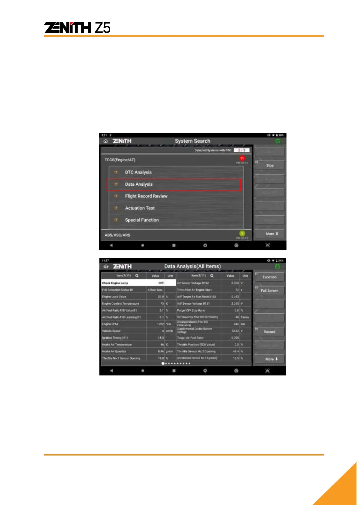 Select [Data Analysis] from the menu then the data parameters are listed as