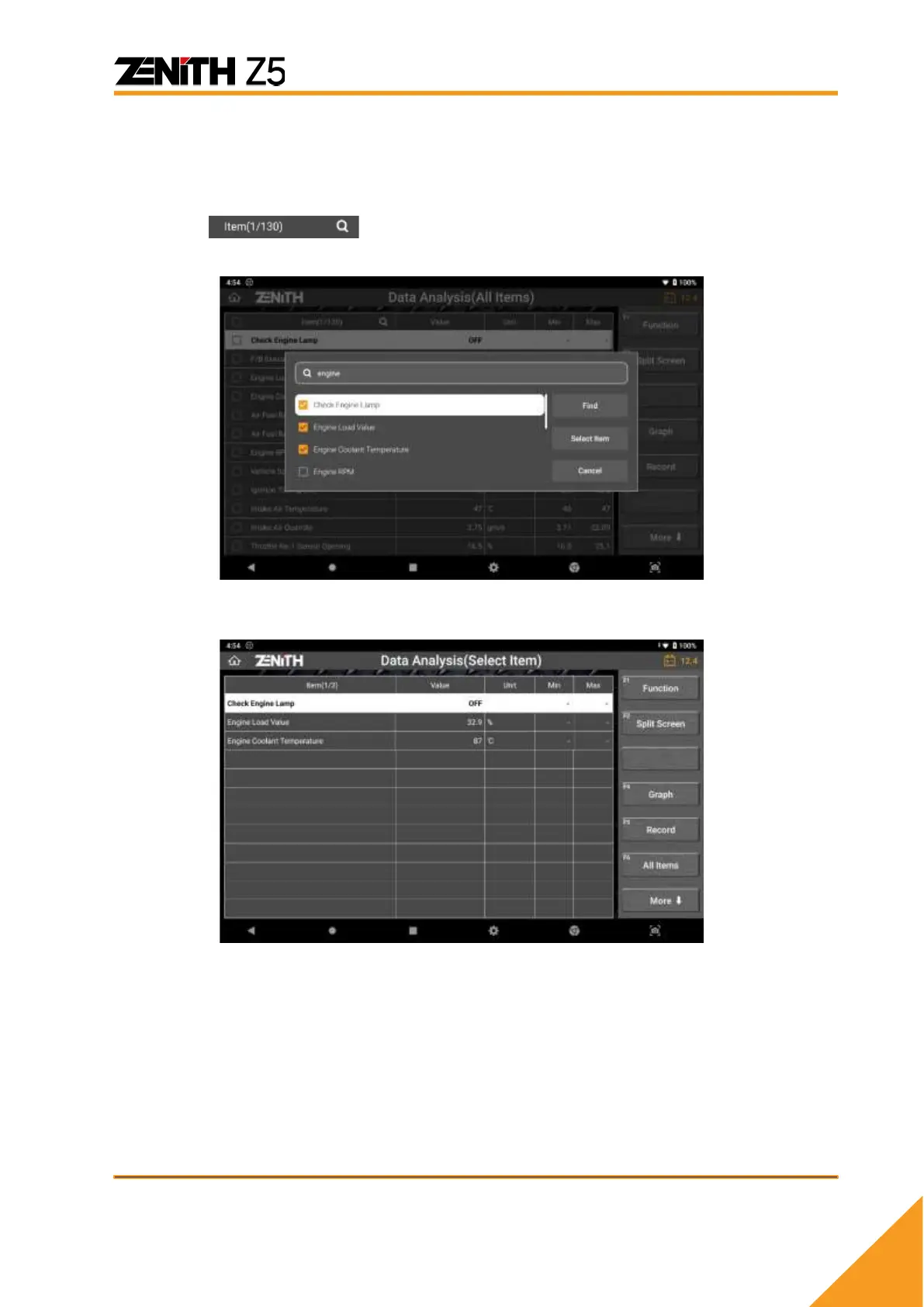 Select [ALL ITEMS] to return to the full list mode.