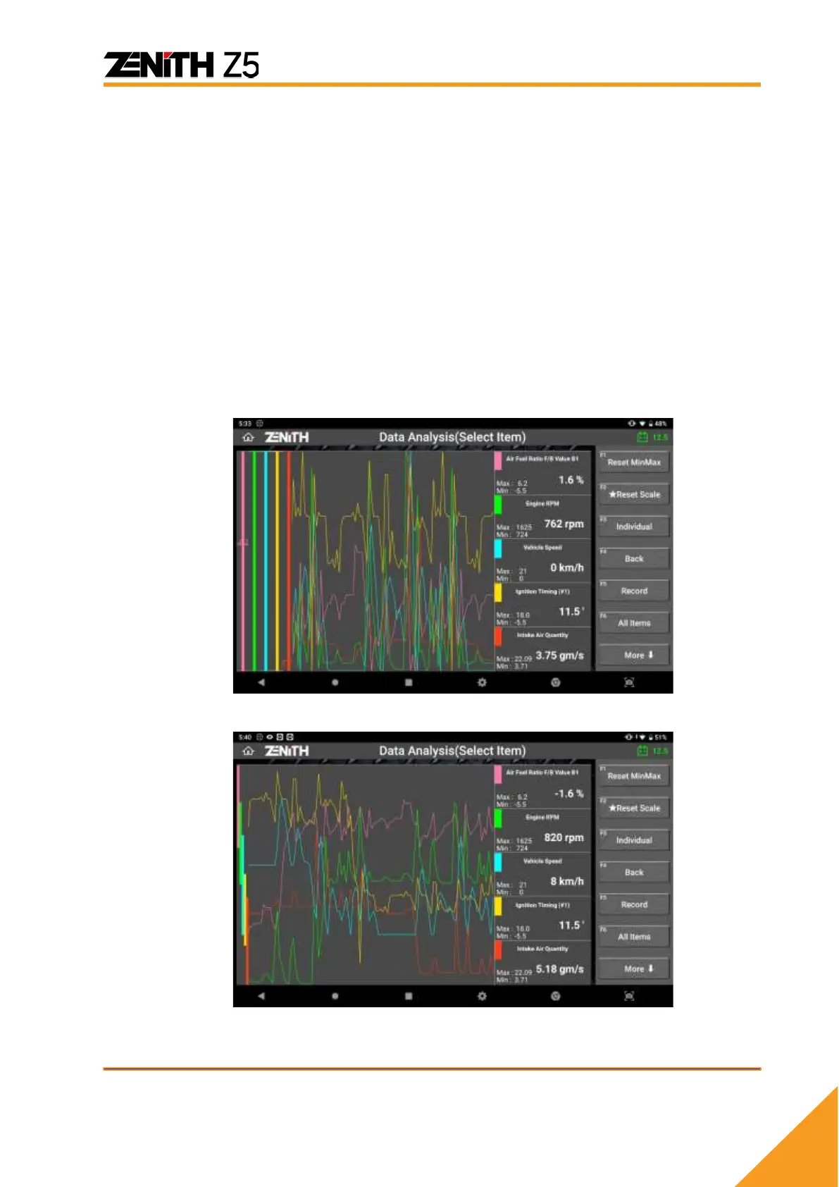 Touch the vertical line of the corresponding color with a finger or the stylus pen