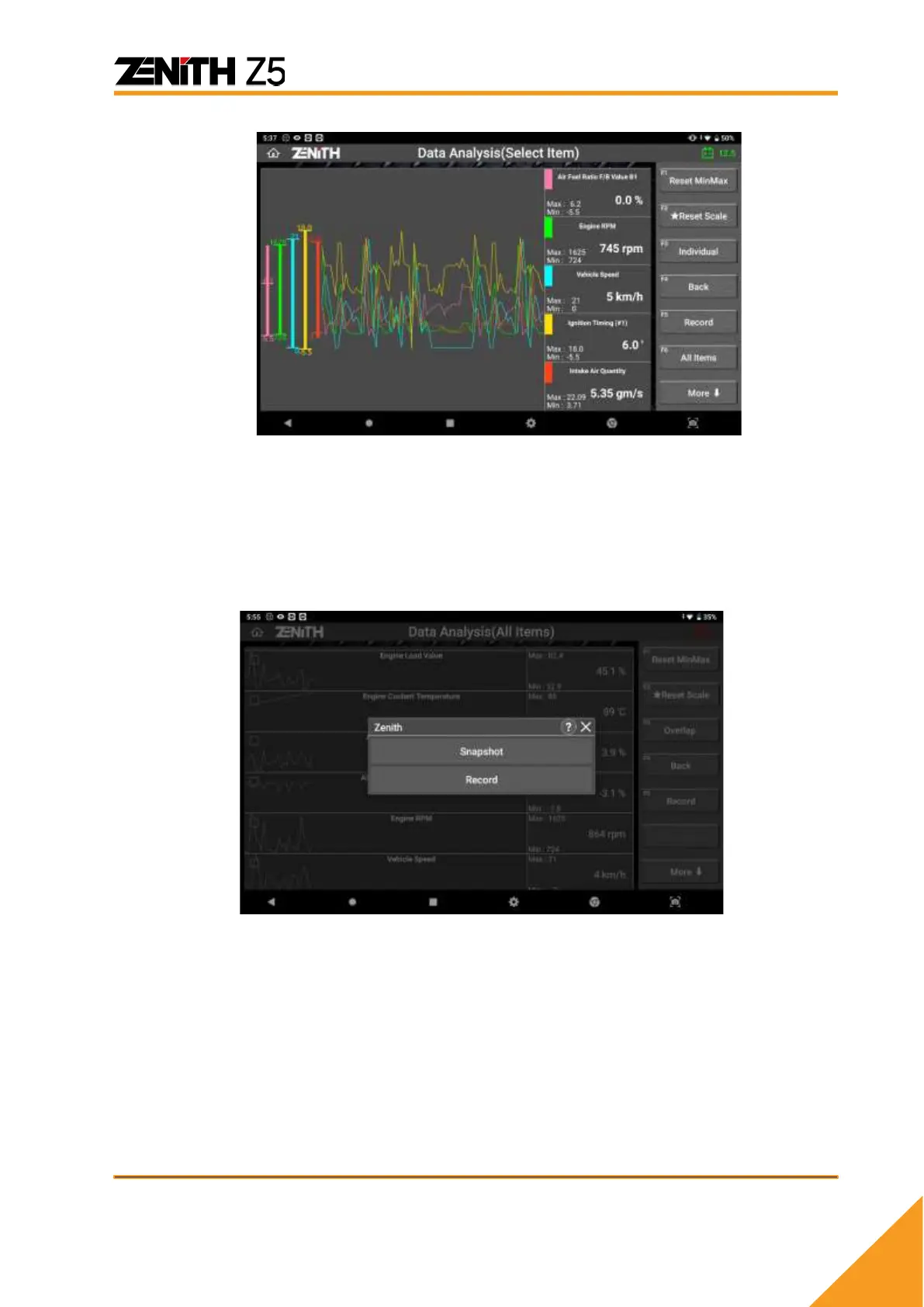 Select [Record] to save consecutive multiple frames containing all parameters.