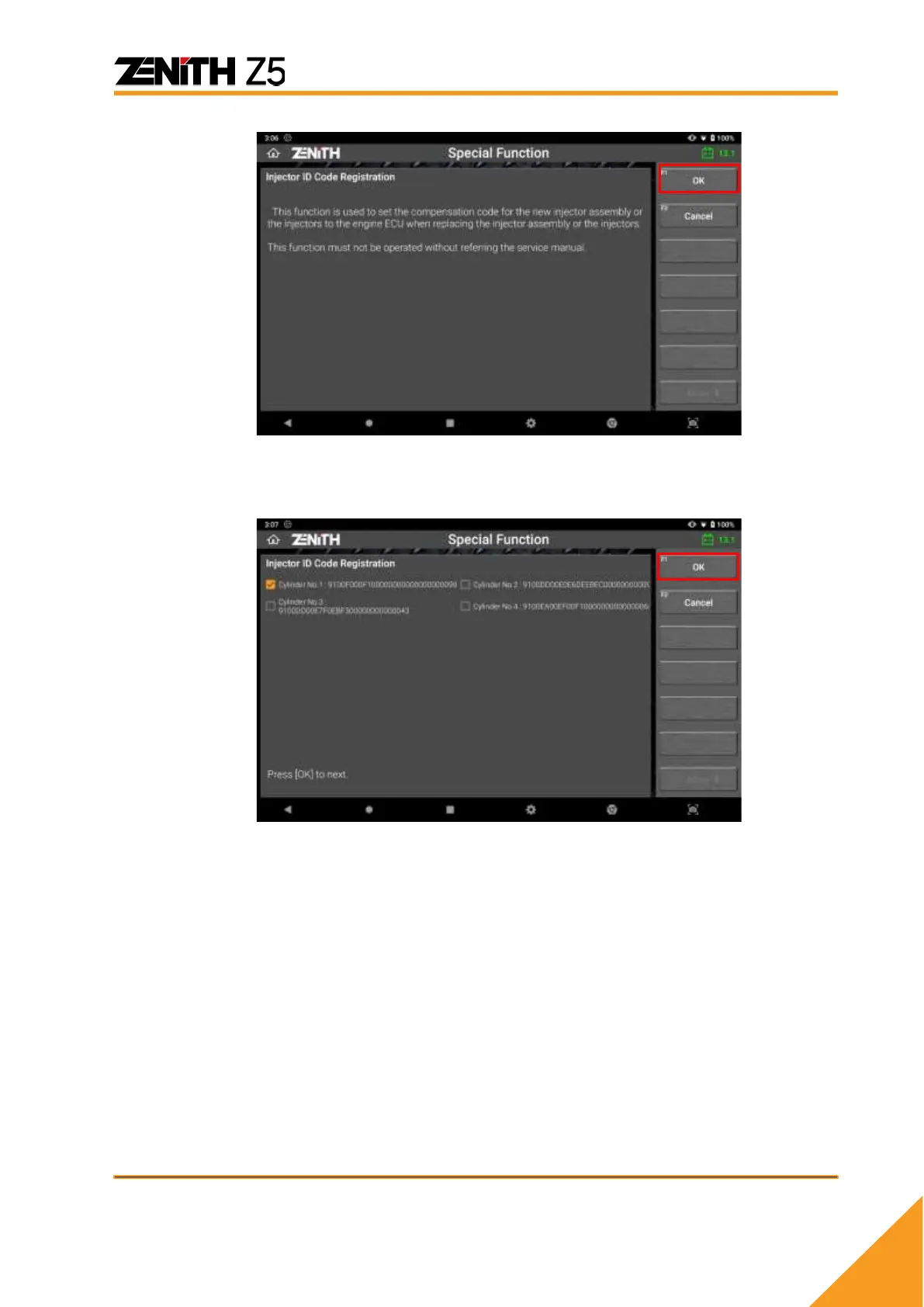 Check if the code has been inputted correctly, then select OK to code the injector.