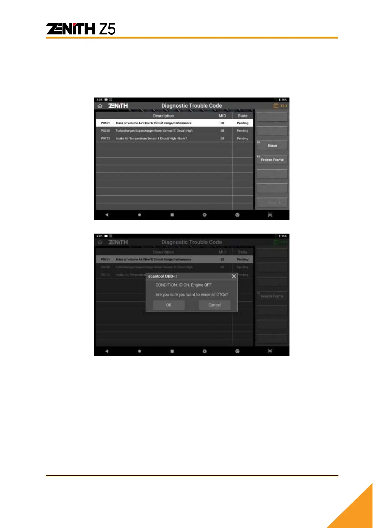 ‘pending’ and ‘current’ DTCs and erasing them from the control system memory are