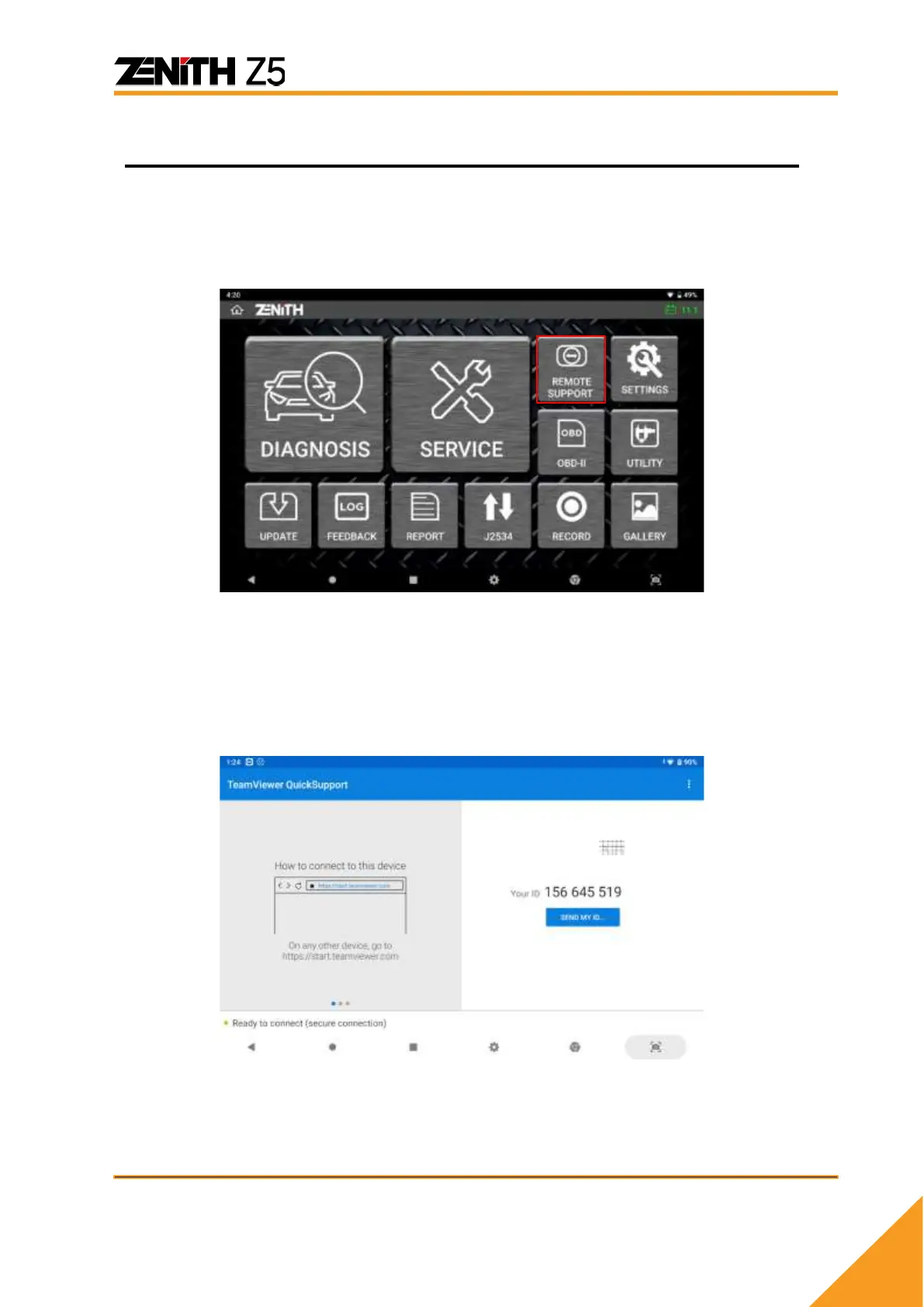 Select [REMOTE SUPPORT] button in the Z5 main screen. Your device’s ID will be