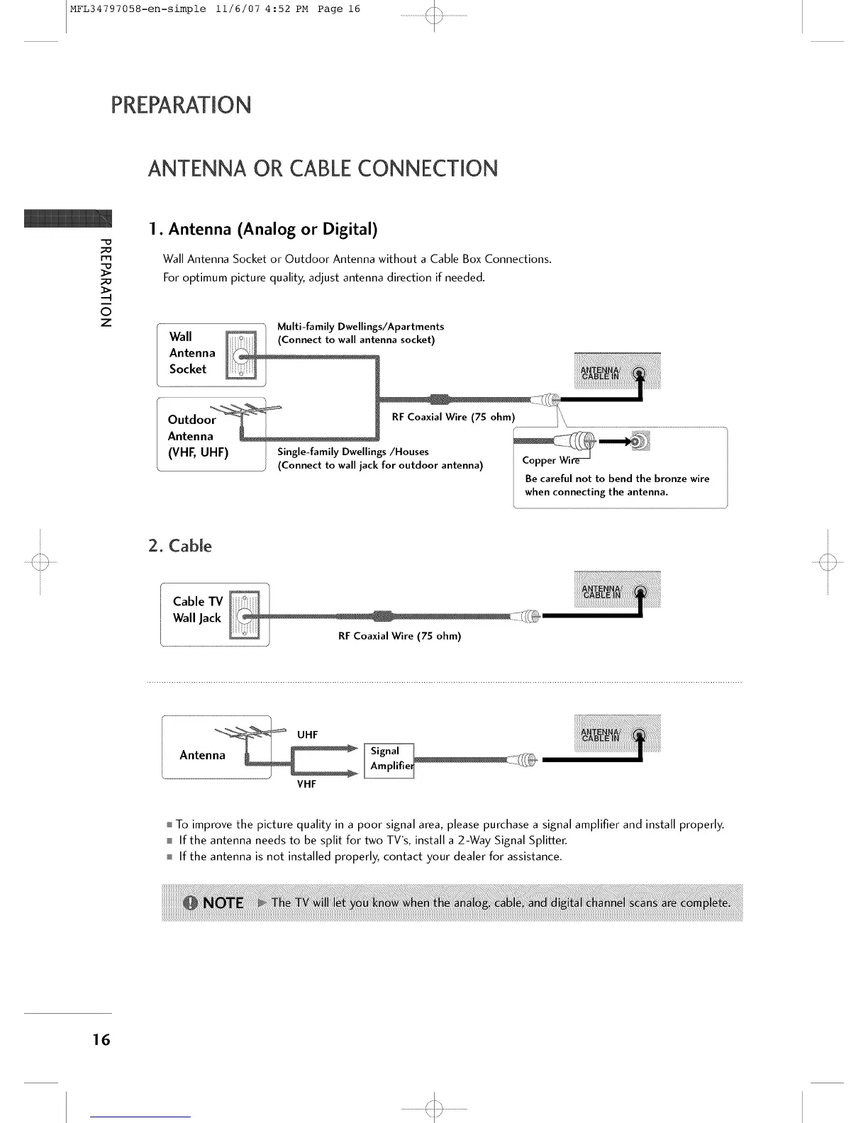 mTo improve the picture quality in a poor signal area, please purchase a signal amplifier and install properly.