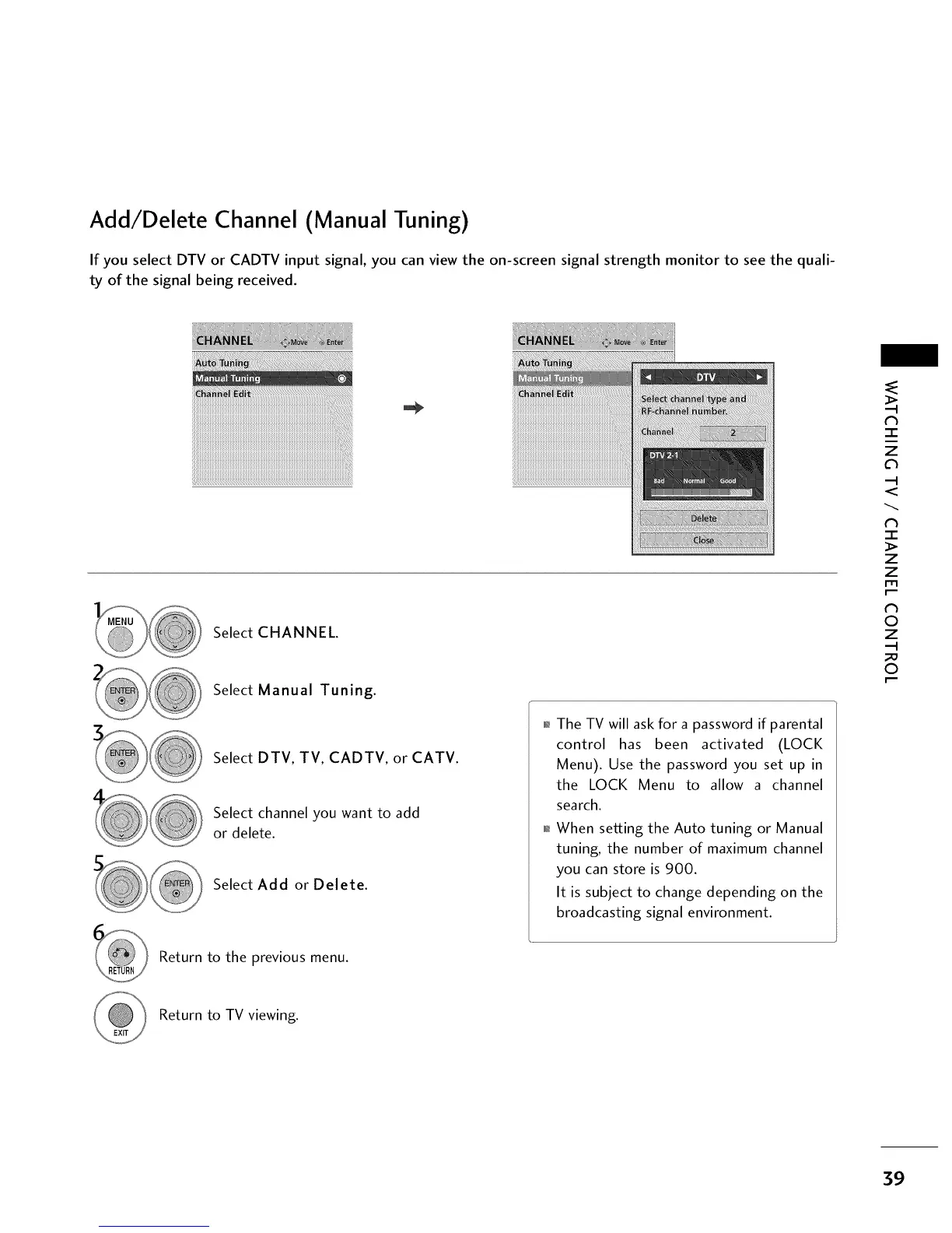 If you select DTV or CADTV input signal, you can view the on-screen signal strength monitor to see the quali-