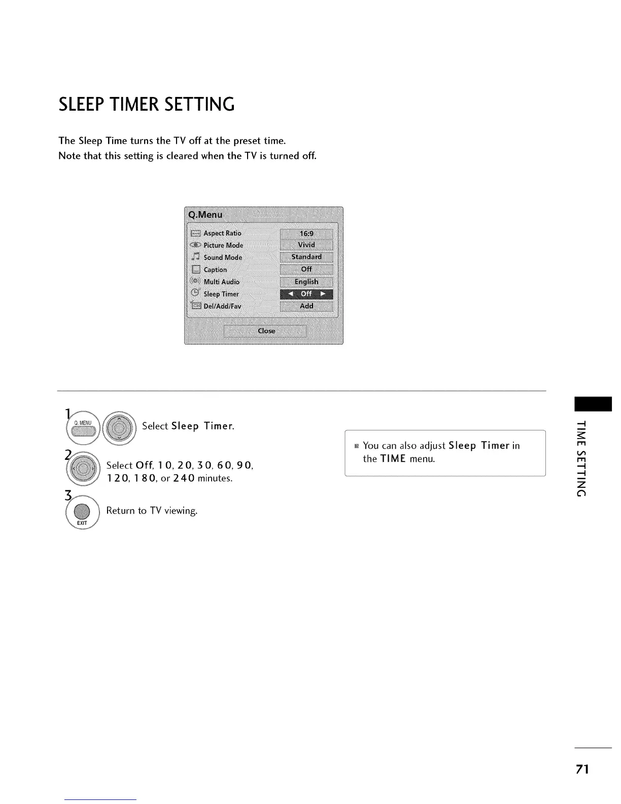 The Sleep Time turns the TV off at the preset time.