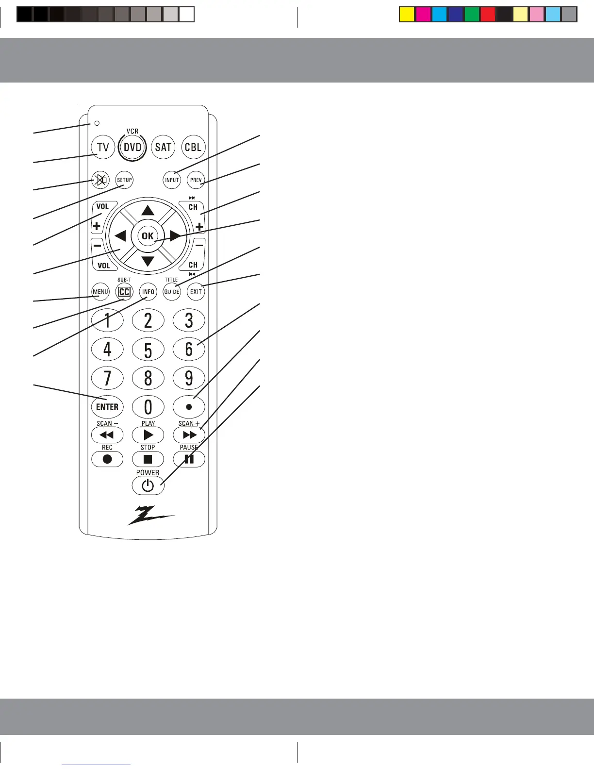 12. RECORD, PLAY, STOP, REW, FF, PAUSE VCR