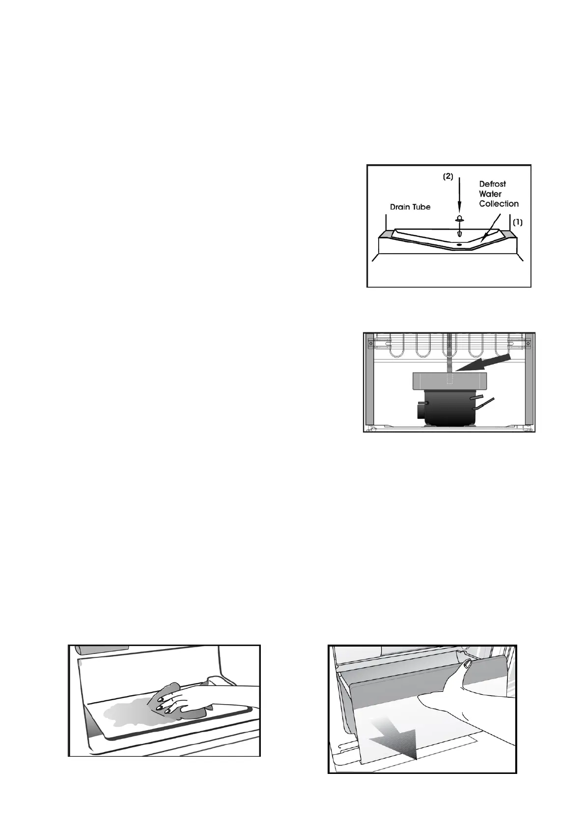 Sponge out the defrost water collected in the bottom of the freezer compartment. After