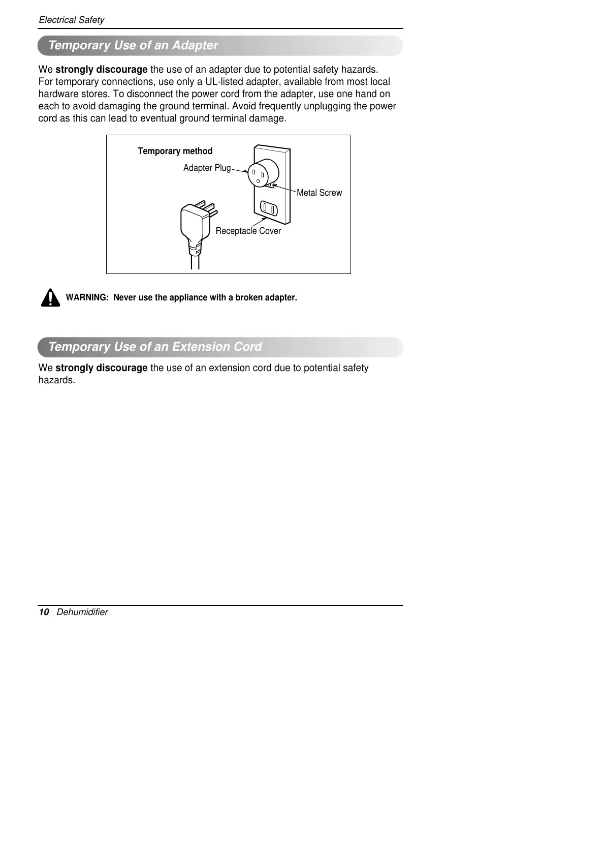 hardware stores. To disconnect the power cord from the adapter, use one hand on