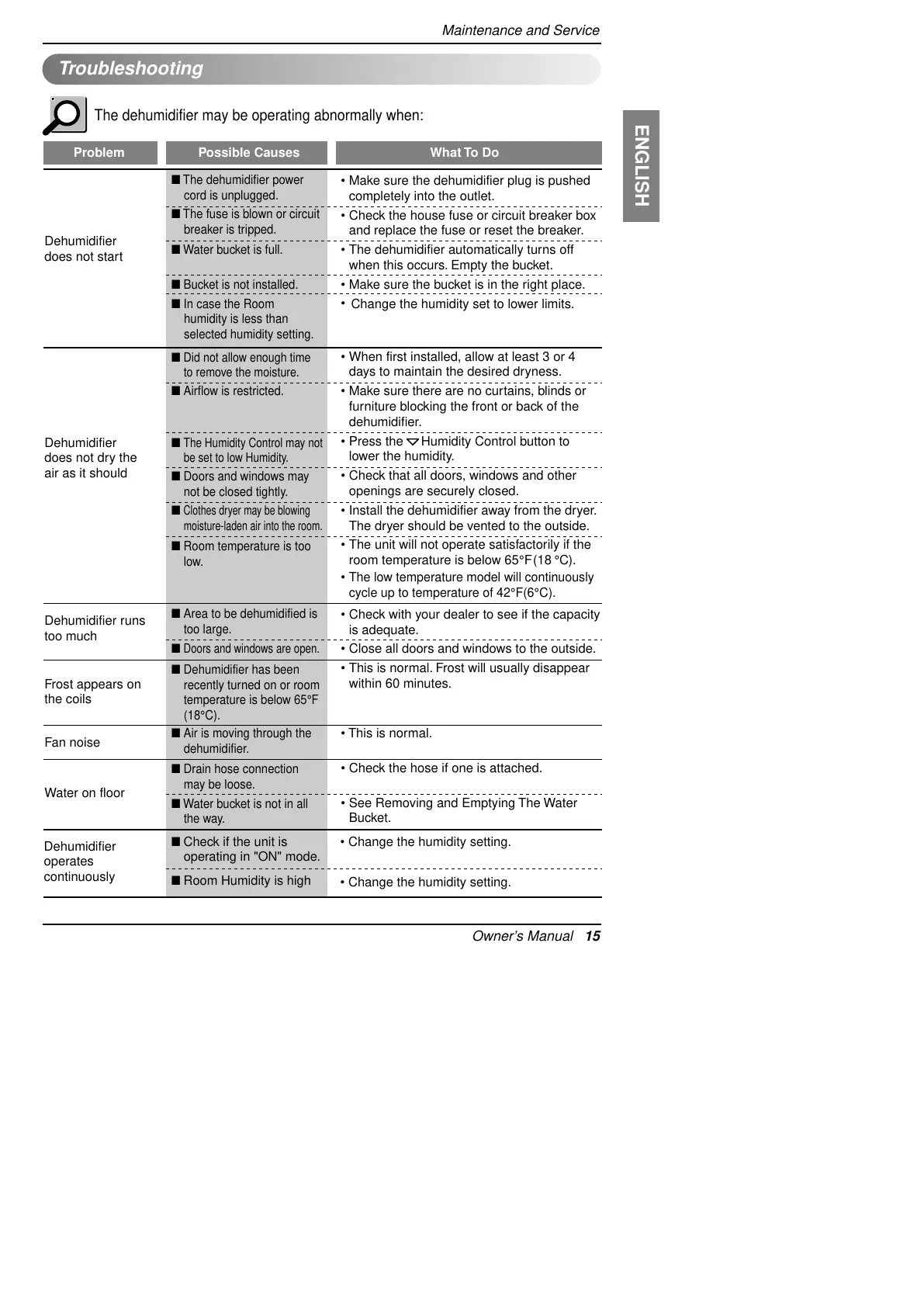 Problem Possible Causes What To Do