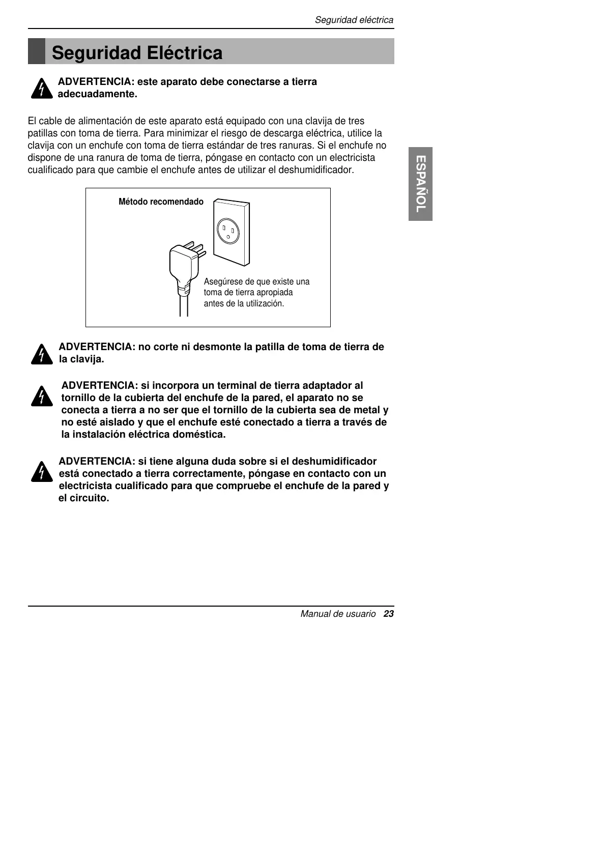 cualificado para que cambie el enchufe antes de utilizar el deshumidificador.