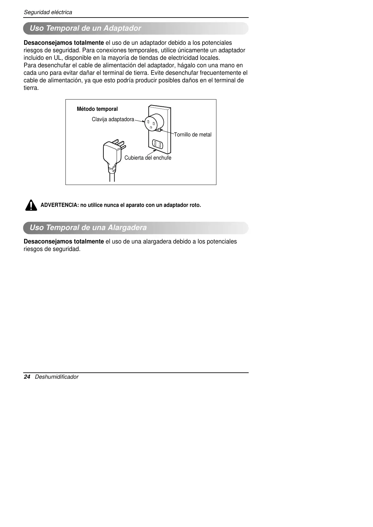 ADVERTENCIA: no utilice nunca el aparato con un adaptador roto.