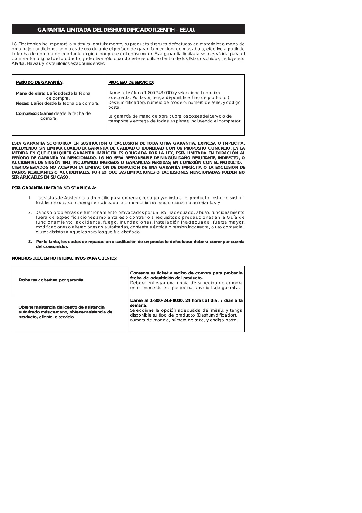 LG Electronics Inc. reparará o sustituirá, gratuitamente, su producto si resulta defectuoso en materiales o mano de