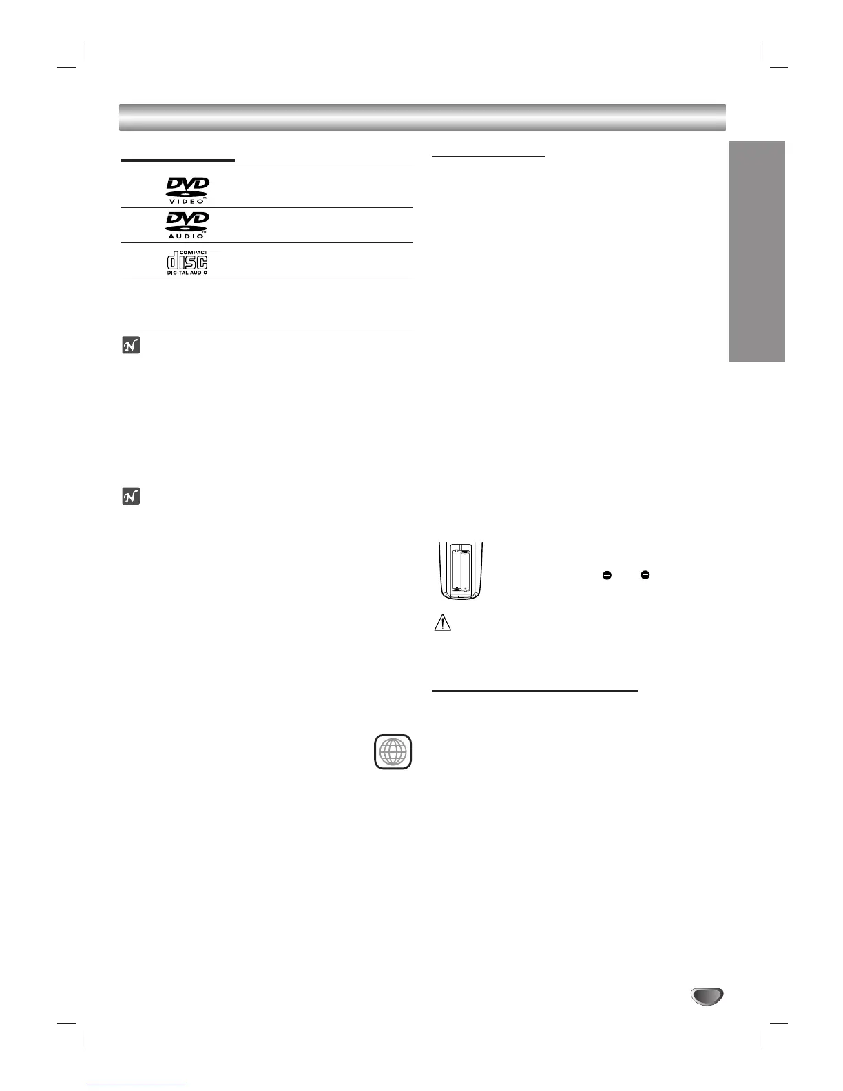 Regional code of the DVD/CD receiver and DVDs