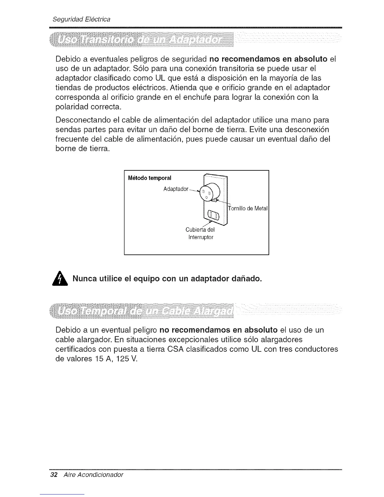 cable alargador. En situaciones excepcionales utilice s61o alargadores