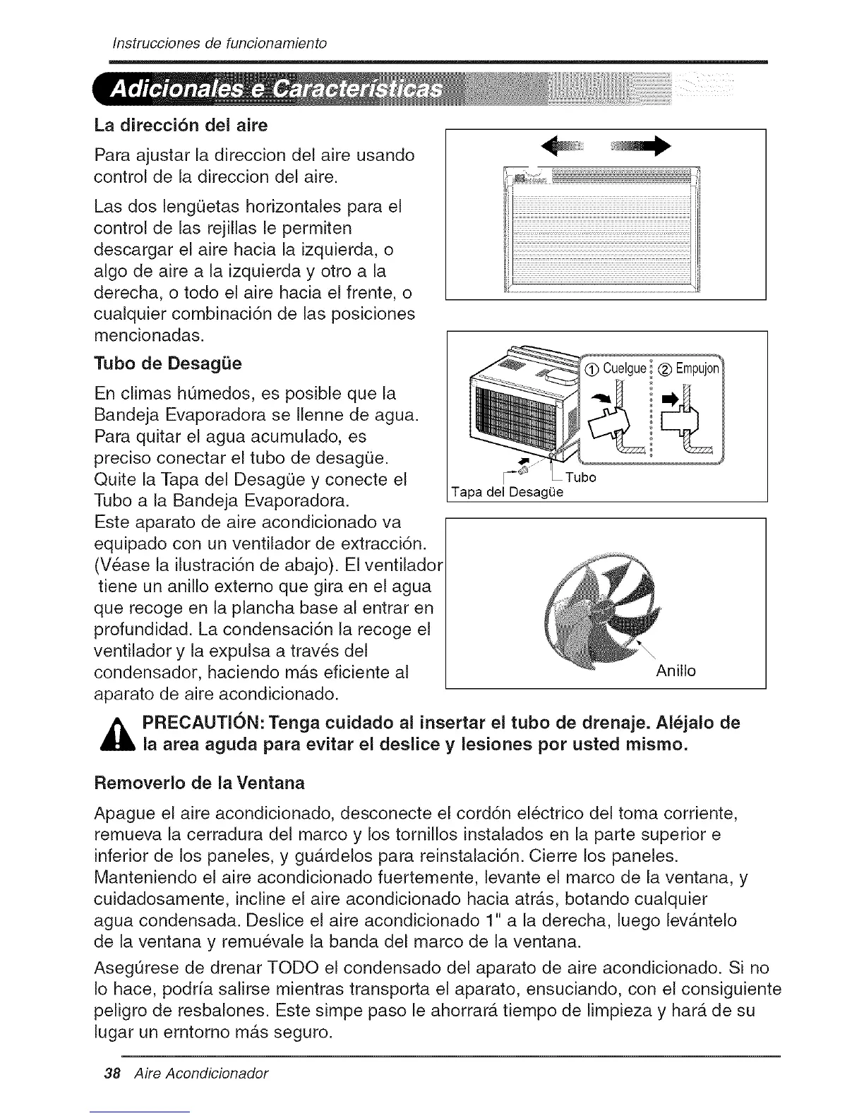 PRECAUTION: Tenga cuidado al insertar el tubo de drenaje. Al_jalo de