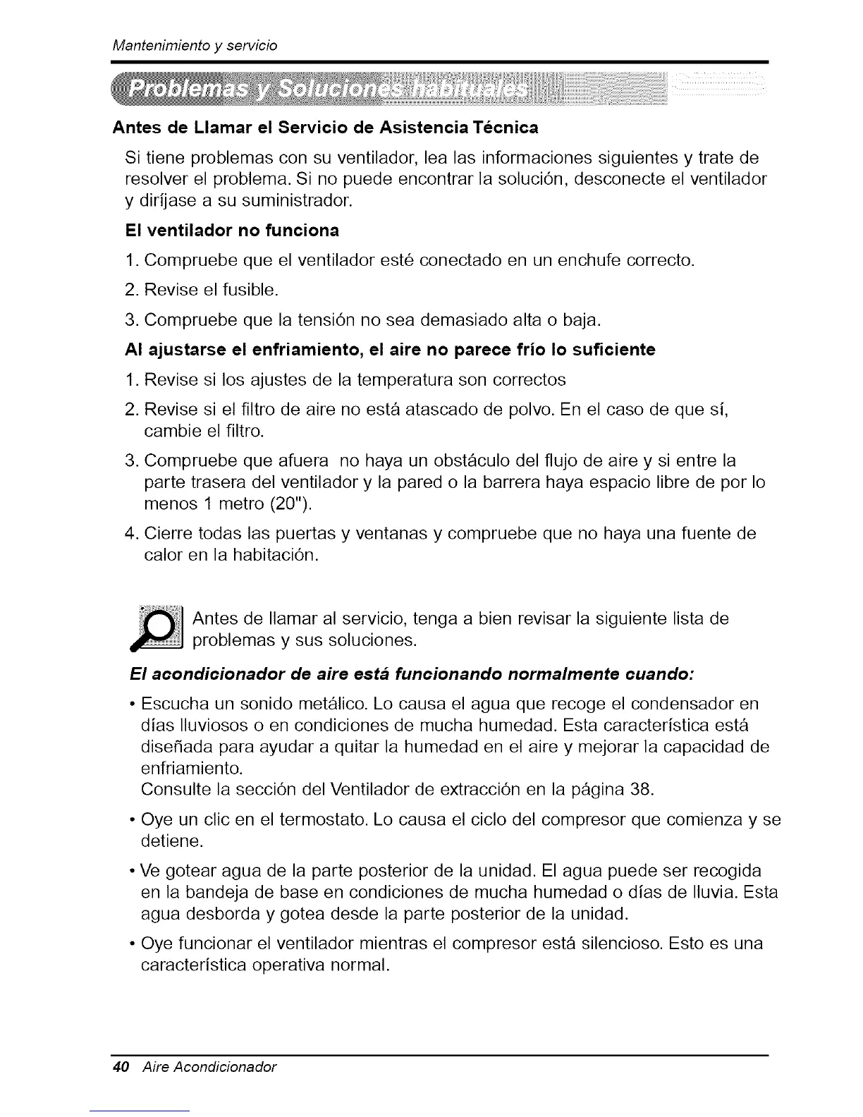 resolver el problema. Si no puede encontrar la soluci6n, desconecte el ventilador