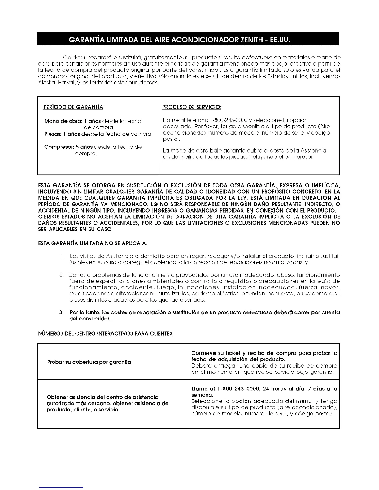 Goldstar reparara o sustituira, gratuitamente, su producto si resulta defectuoso en materiales o mano de