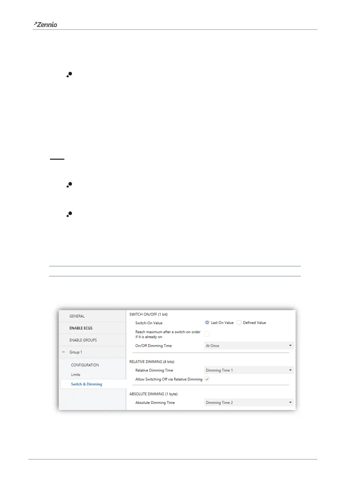 Note: in case of configuring dimming limits (see section 2.5.3), they will be applied as