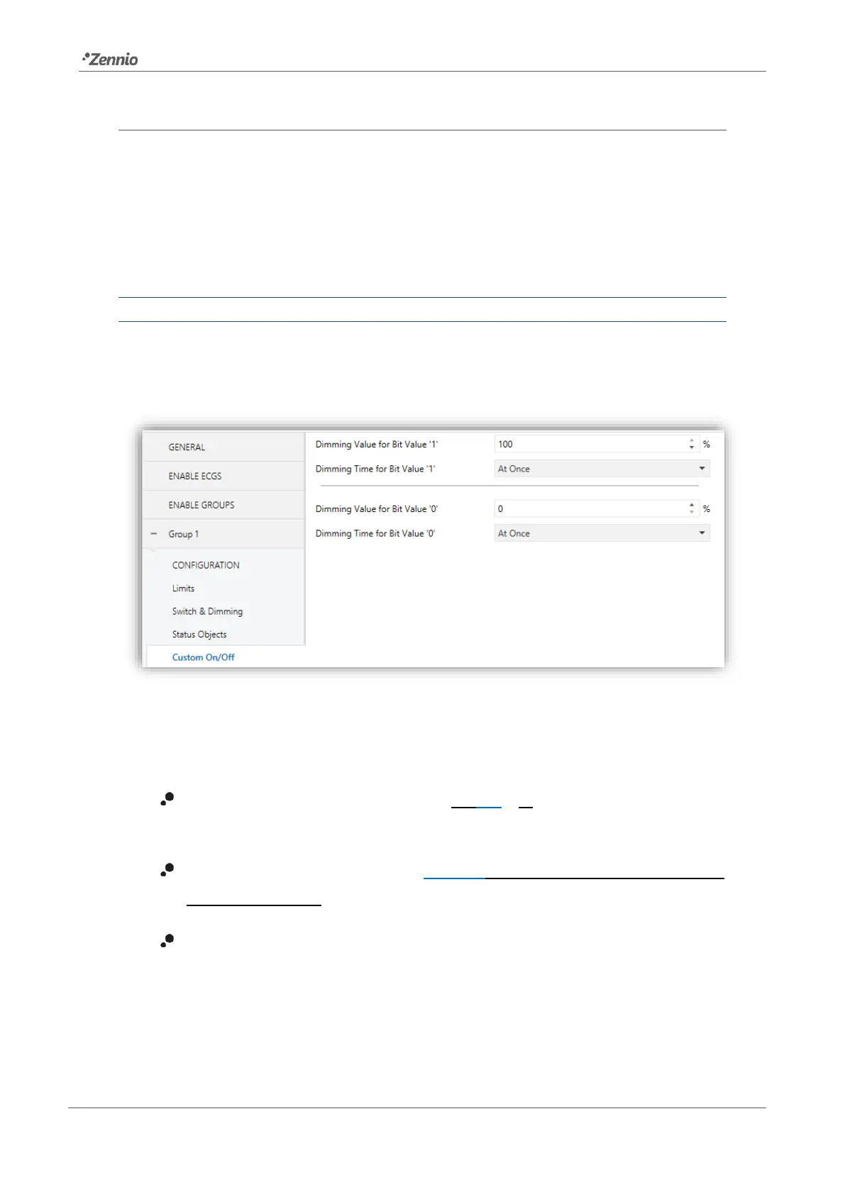 Dimming Value for Bit Value ‘1’ [0…100] [%]: sets a specific dimming
