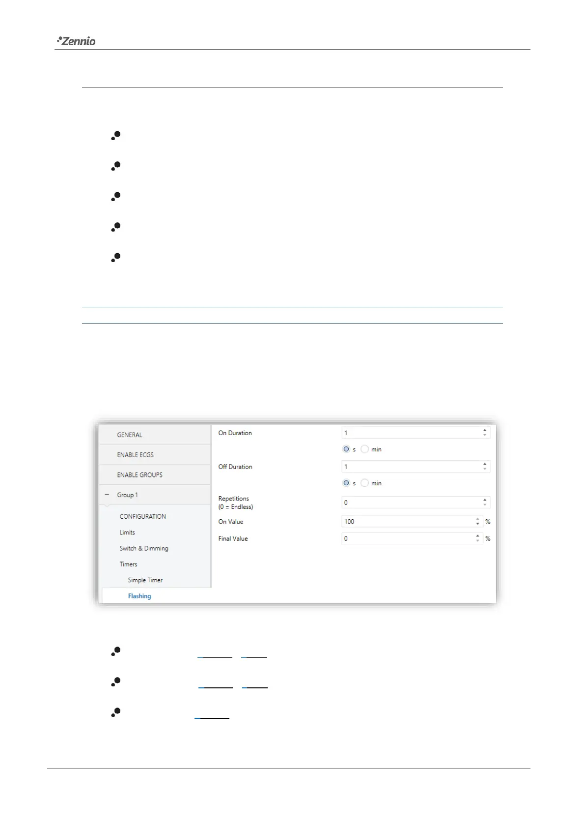 Once the flashing function has been enabled, the “[Group n] Flashing” one-bit object