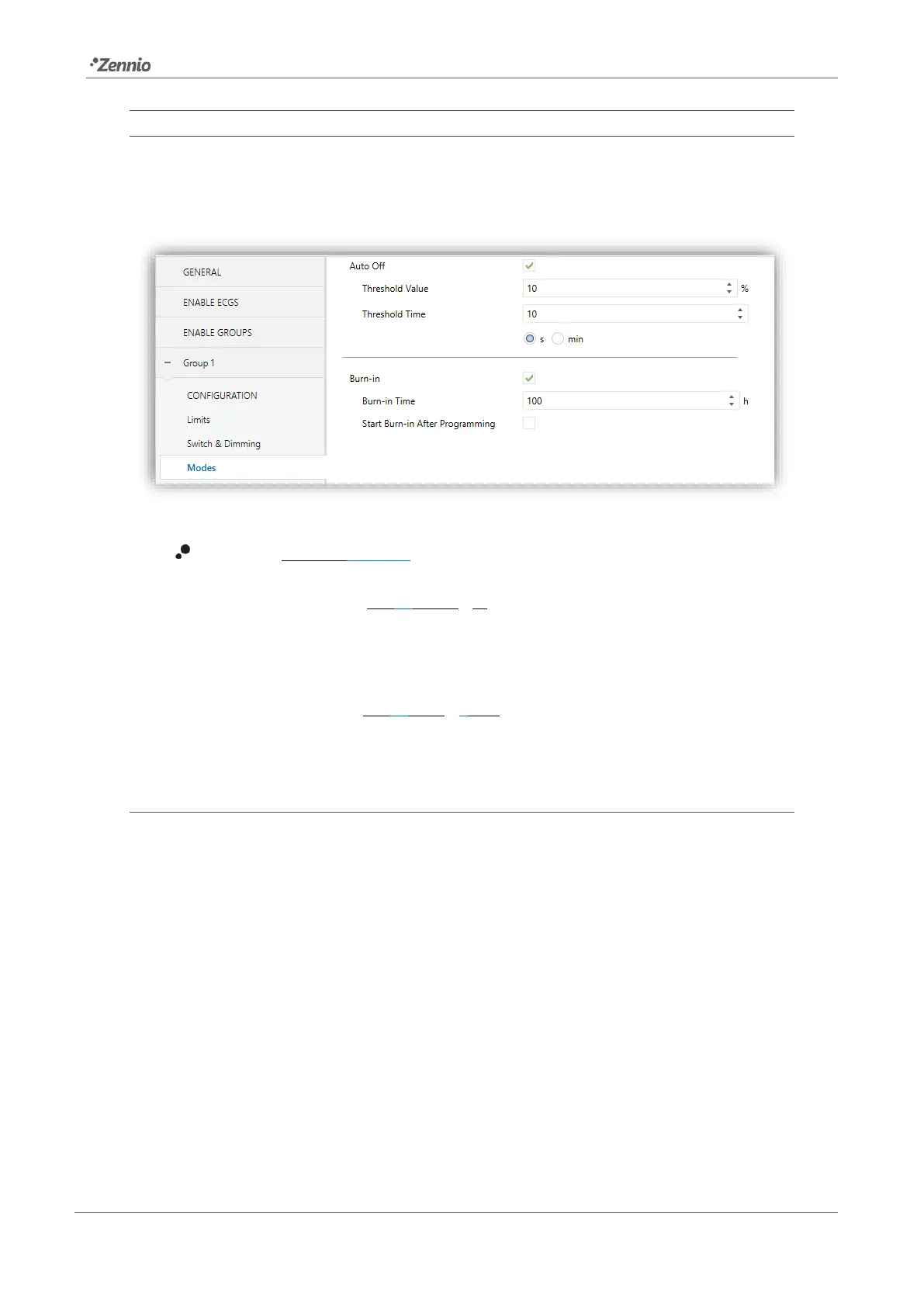This functionality entails certain effects over other functions (while the Burn-in mode