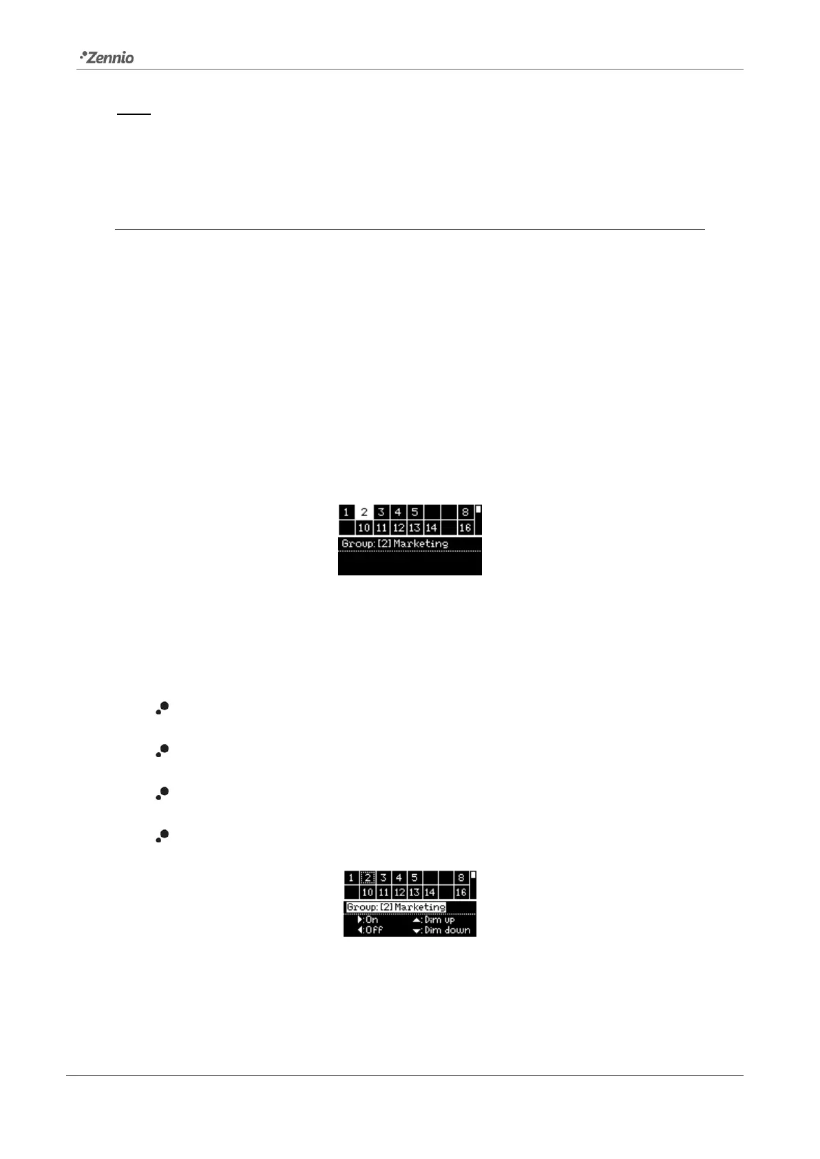 This submenu allows controlling the dimming level of the different groups manually. The