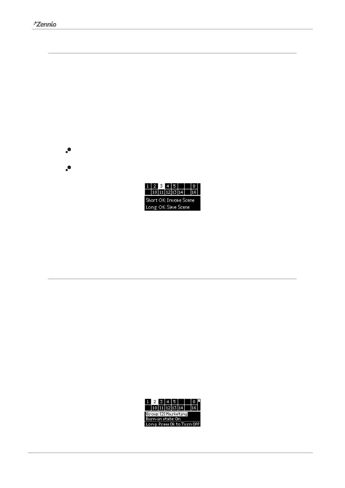 To run the selected scene, please short-press on OK.
