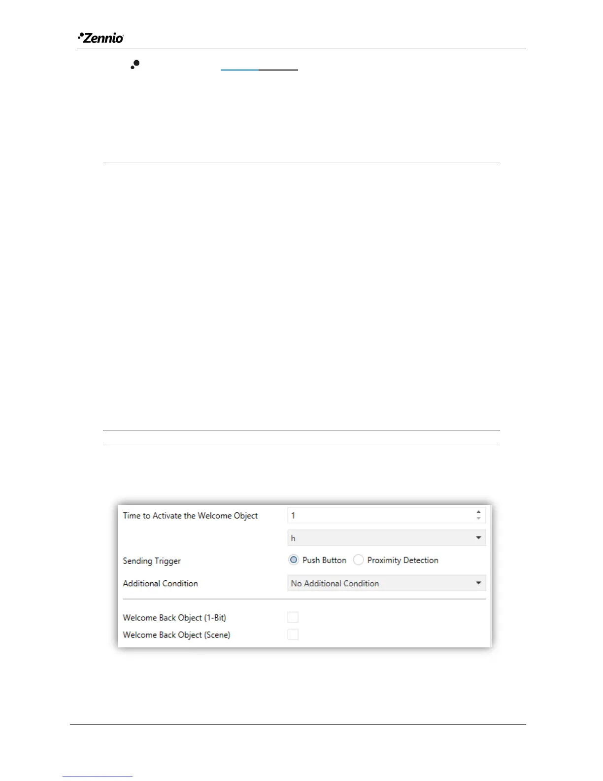 Flat / Flat 55 can send a specific object (the welcome back object) to the KNX bus
