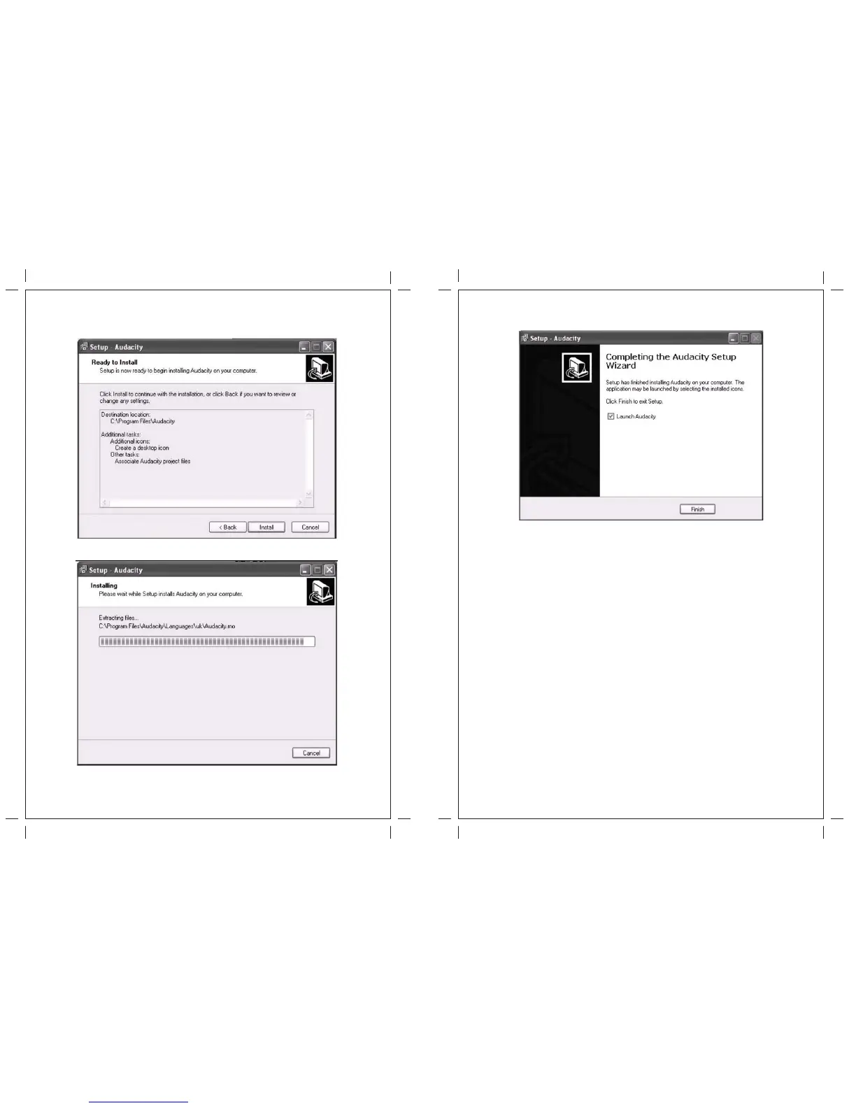 Zennox D3939 - Completing Audacity Installation; Initiating Installation; Finalizing Setup and Launch