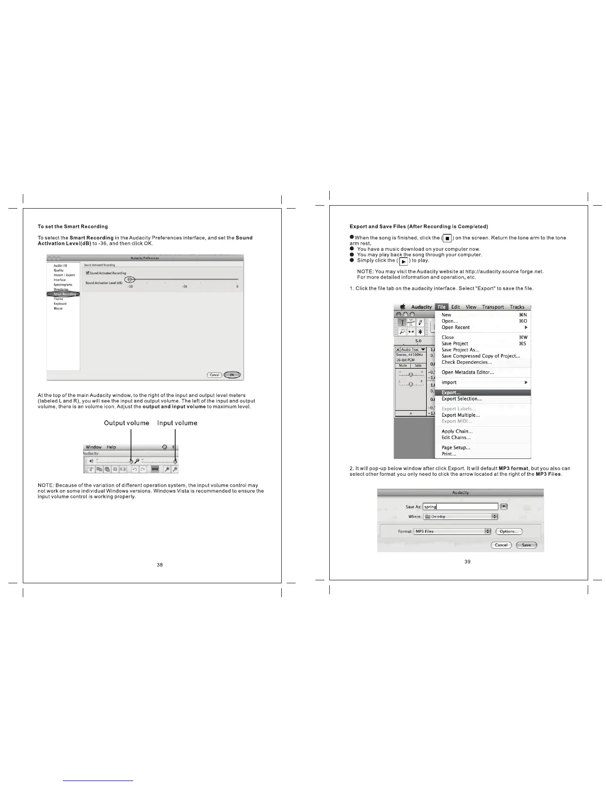 Zennox D3939 - Audacity Recording and Export Settings; Configuring Smart Recording Options; Saving Recorded Files to Disk