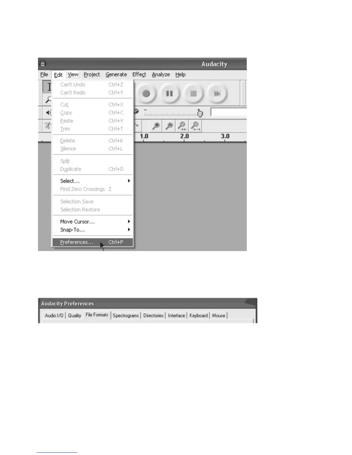 z The screen will open up Audacity Preferences. You can see the AudioI/O, Quality, File