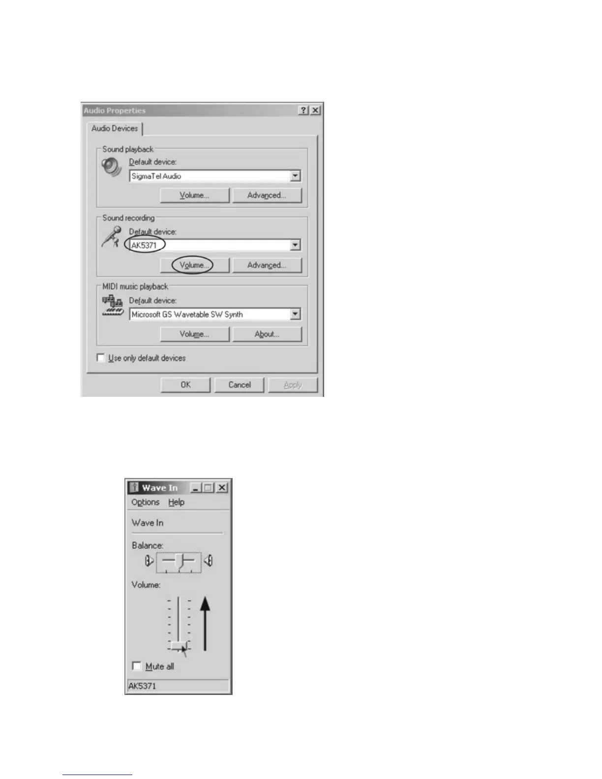 z Select sound recording default device and click Ak5371, then click the Volume to enter