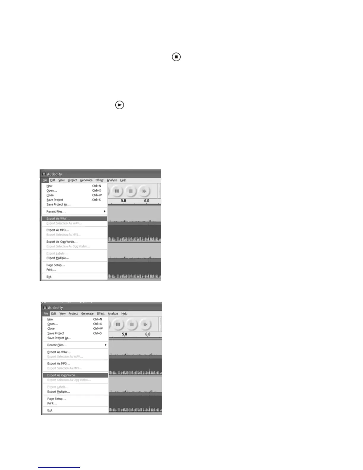 Select “Export as WAV” or “Export as Ogg”.