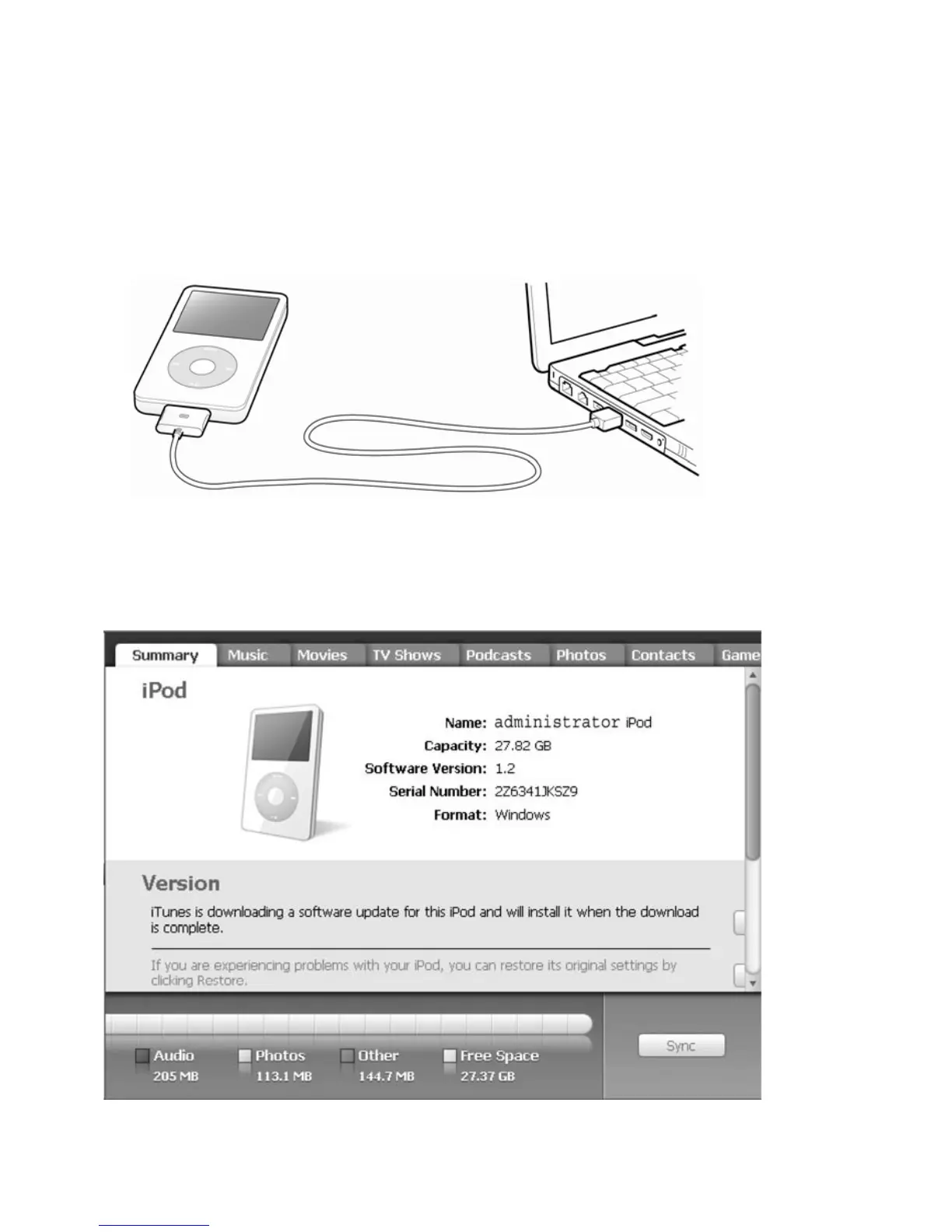 Zennox E-E010 - Connecting iPod and Summary; Connecting iPod to Computer; iPod Summary Interface