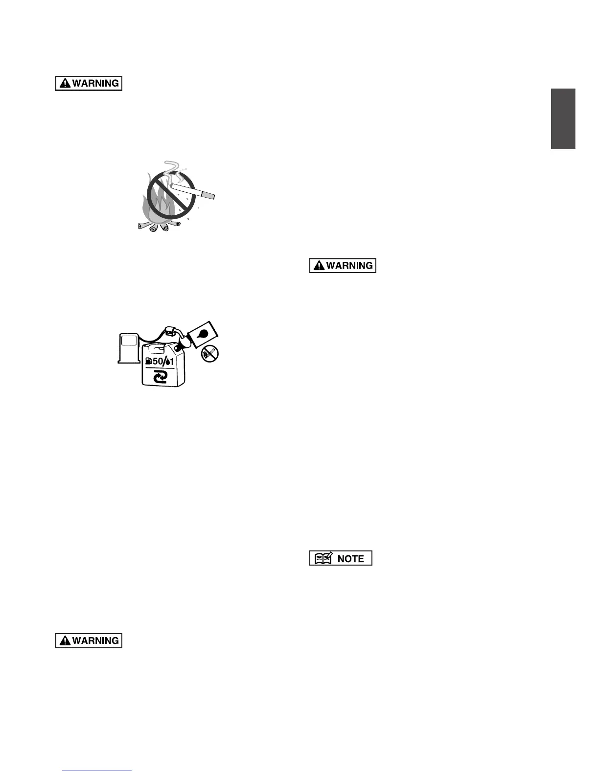 • Gasoline is very flammable. Avoid smoking or