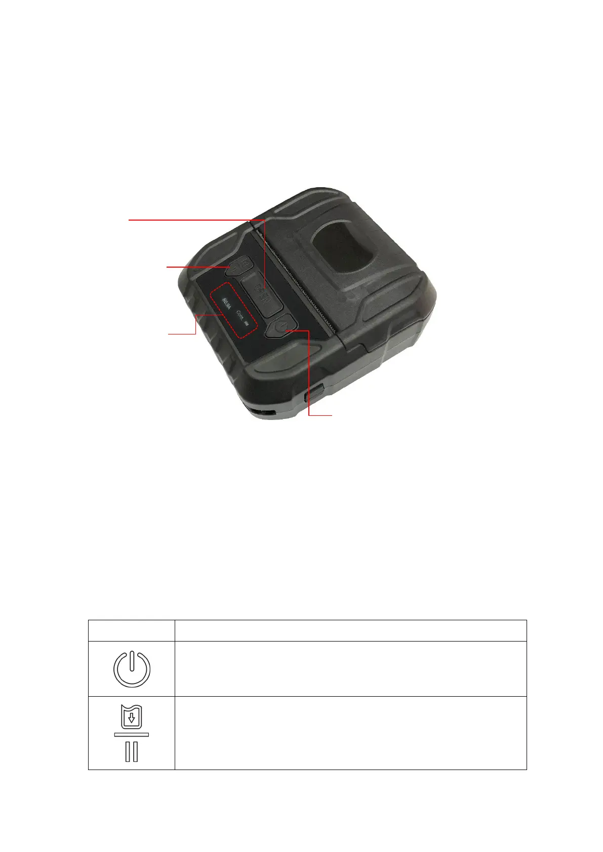 1. Press and hold for 2-3 seconds to turn on the printer.