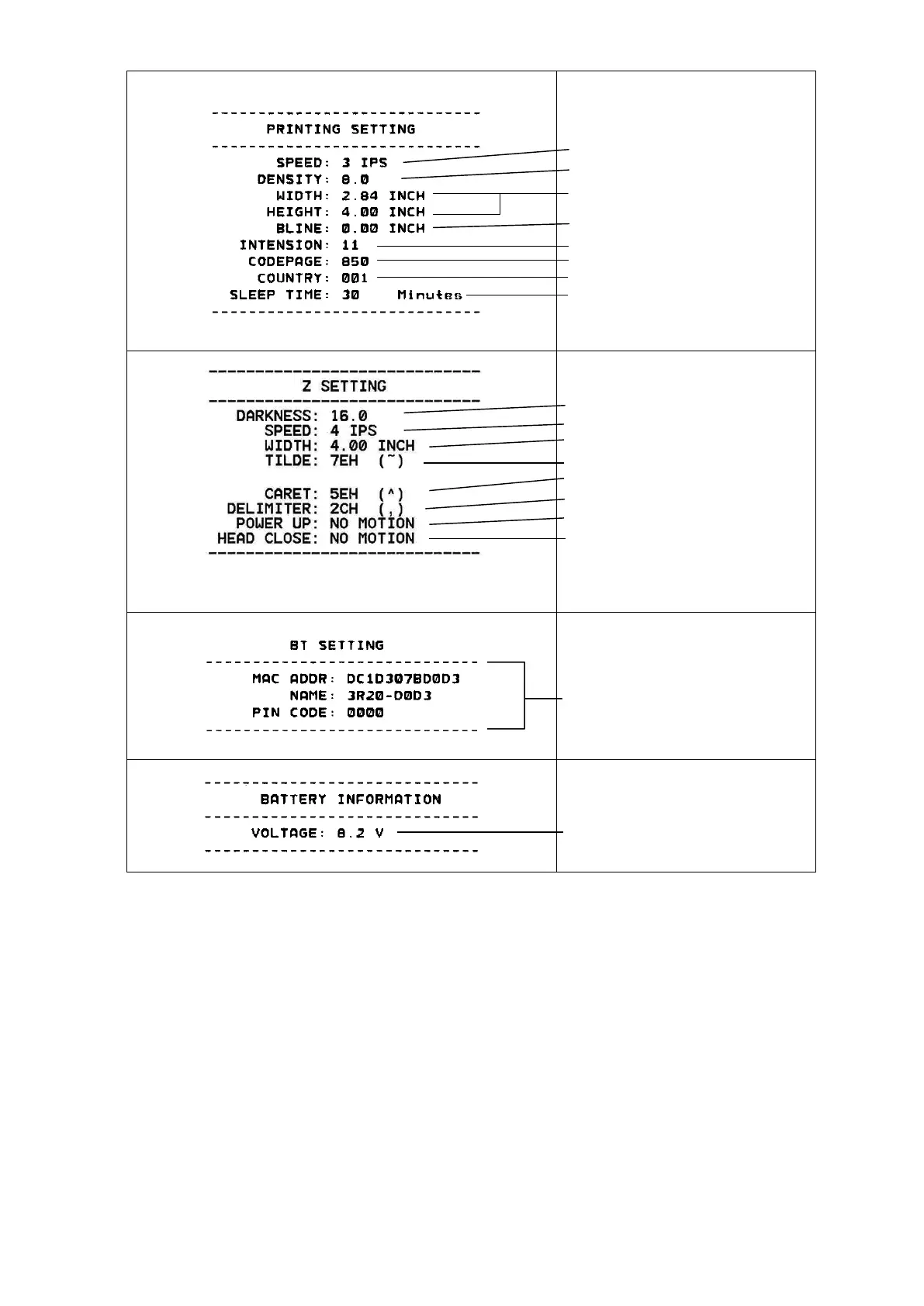 ZPL setting information