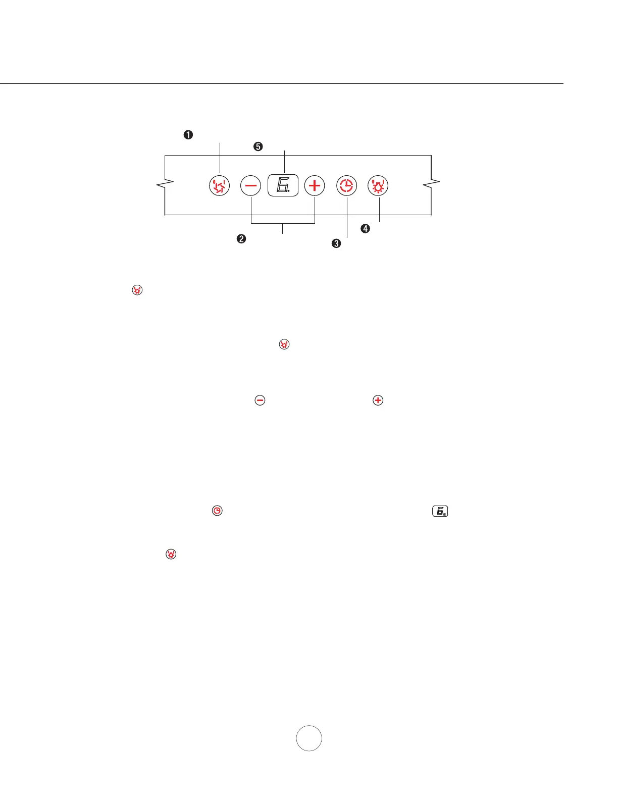 - Lorsque la hotte est éteinte, appuyez sur la touche et maintenez-la enfoncée pendant deux secondes. Si cinq icônes de