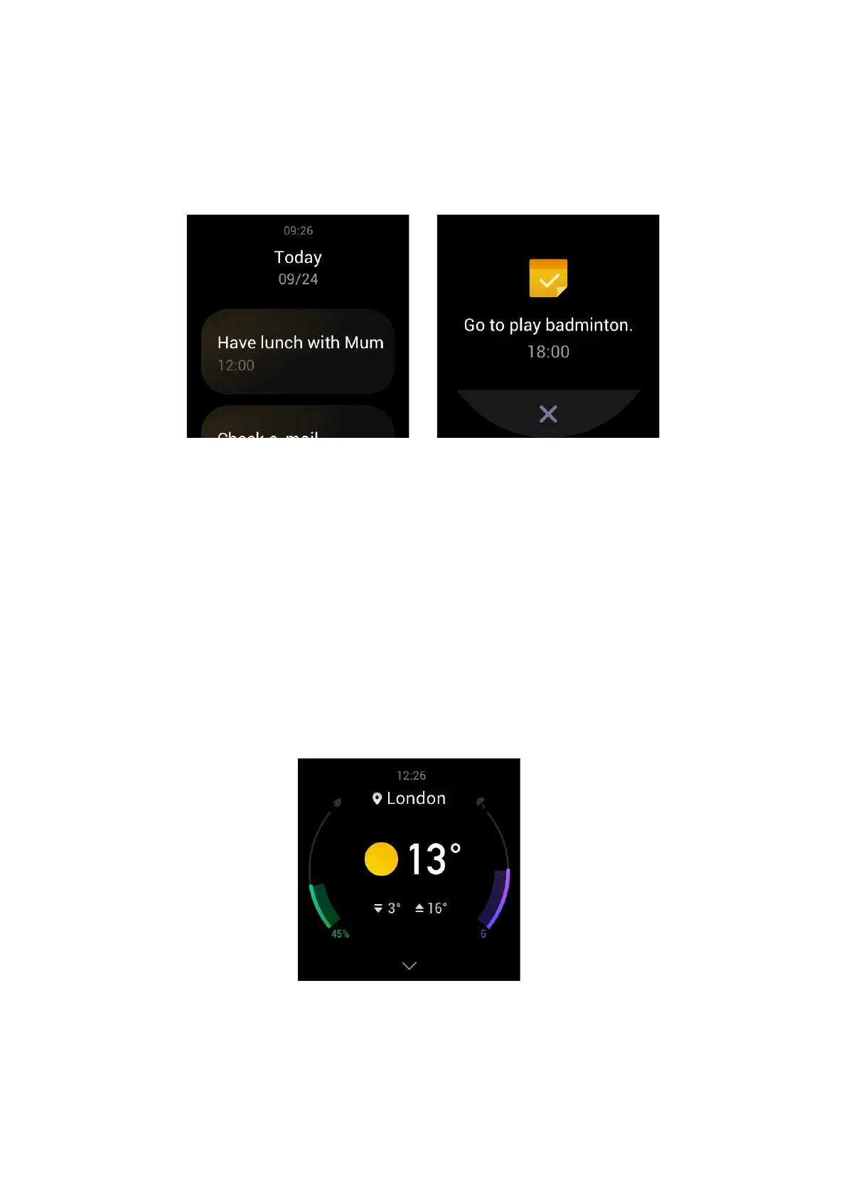 After you create a schedule, the watch vibrates to remind you of your schedule on the set day.