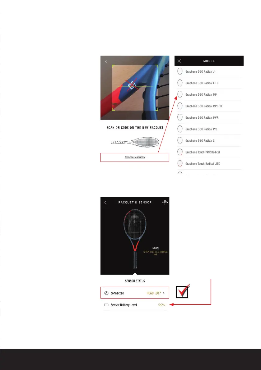 Nach erfolgreicher Durchführung der Schritte 1-3 ist der Sensor nun mit der HEAD Tennis Sensor App