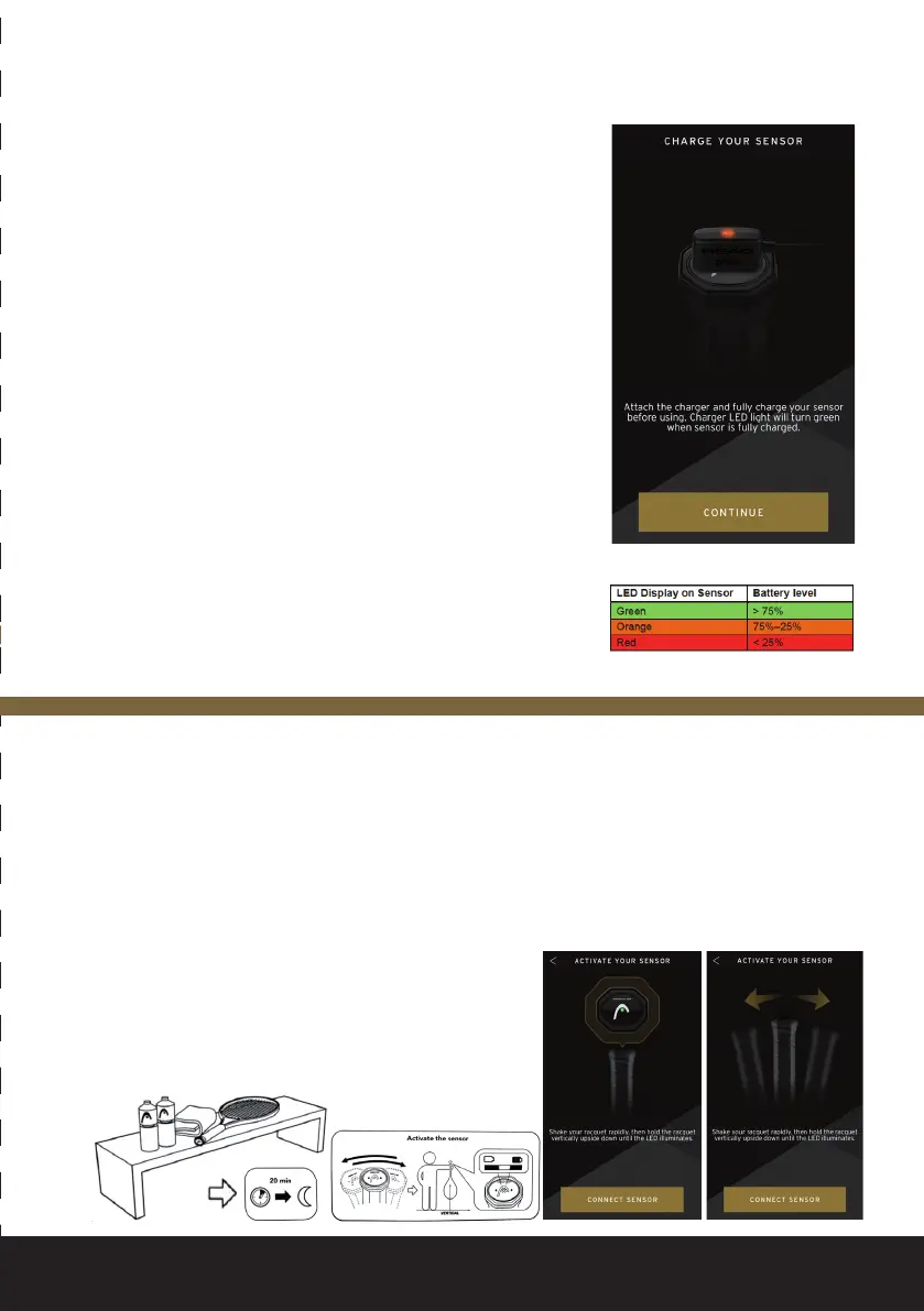 racquet vertically for half a second. If the Sensor is on and ready, the LED display